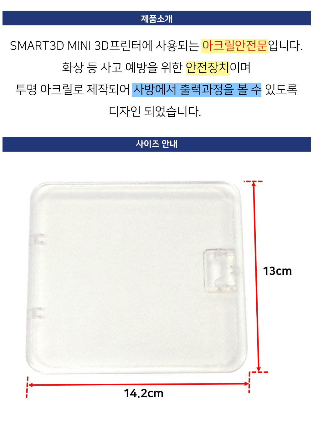 SMART3D MINI 3D프린터에 사용되는 아크릴 안전문입니다.