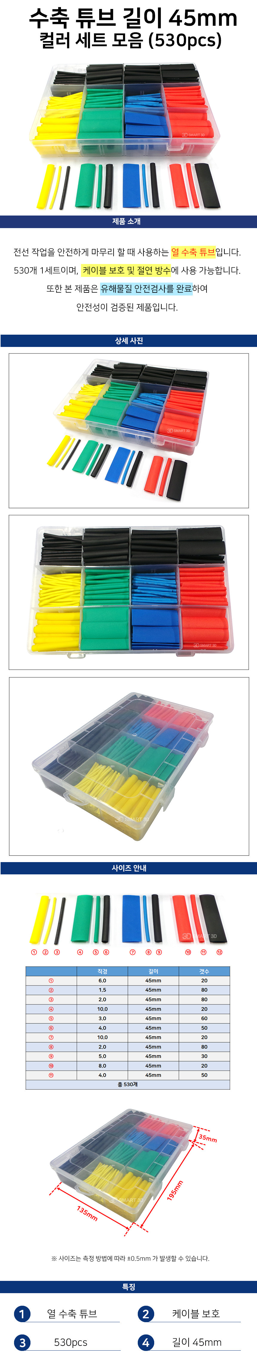 [VIP] 530pcs 길이 45mm 수축튜브 컬러 세트