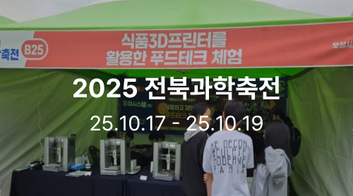 ⓒ스마트3D_전주대학교_전북과학축전_식품3D프린터_푸드프린팅_체험부스 안녕하세요, #스마트3D 입니다. 저희 스마트3D가 #전주대학교 대운동장에서 개최된 #전북과학축전 에 참여해 #식품3D프린터 를 통해 푸드프린팅 원리 쉽고 재밌게 이해할 수 있는 체험 교육 부스를 운영했어요! 👏 ⓒ스마트3D_전주대학교_전북과학축전_식품3D프린터_푸드프린팅_체험부스_전시포스터 2025 전북과학축전은 전북특별자치도와 전북특별자치도교육청이 주최하고 전북테크노파크가 주관하는 과학 기술 박람회로 매년 다채로운 과학 기술 관련 부스로 운영되는 행사입니다. ⓒ스마트3D_전주대학교_전북과학축전_식품3D프린터_푸드프린팅_체험부스_행사장전경 이번에는 전주의 중심 교육 기관 #전주대학교 대운동장에서 개최되었는데요! 야외 행사라 우천 시 취소될까 염려했던 것과는 달리 다행히 밤새 비가 그쳐 나름 화창한 날씨로 많은 관람객분들과 함께할 수 있었습니다.😊 ⓒ스마트3D_전주대학교_전북과학축전_식품3D프린터_푸드프린팅_체험부스_식전공연_호원대학교_뮤지컬갈라쇼 오전에는 메인 무대에서 뮤지컬 갈라쇼를 선보여 눈과 귀가 즐거웠어요🎶 ⓒ스마트3D_전주대학교_전북과학축전_식품3D프린터_푸드프린팅_체험부스_식전공연_사이언스일루전_매직쇼 뮤지컬에 이어 마술쇼까지 진행되어 어린이 친구들이 손을 번쩍번쩍 들며 참여했습니다. 이 어린이 친구들의 관심을 한몸에 받은 곳은 바로, 저희 스마트3D의 식품3D프린터 부스죠! 😉 ⓒ스마트3D_전주대학교_전북과학축전_식품3D프린터_푸드프린팅_체험부스_오성시스템(주) 개장하자 마자 가족단위 참관객분들 부터 방문해주기 시작했습니다. ⓒ스마트3D_전주대학교_전북과학축전_식품3D프린터_푸드프린팅_체험부스_현장 가족단위 뿐 아니라 미래의 과학 기술인을 꿈꾸는 청소년 친구들도 즐겁게 체험해주셨어요! ⓒ스마트3D_전주대학교_전북과학축전_식품3D프린터_푸드프린팅_체험부스_현장 미래의 과학기술인을 꿈꾸는 청소년, 자녀와 함께 방문한 학부형님, 교사, 정부부처 관계자님들까지 #푸드테크 를 남녀노소 누구나 쉽고 재밌게 경험하는 시간이였습니다.😉 이번 박람회에서 스마트3D는 단순한 기술 전시를 넘어, 식품 3D프린터 기술이 교육, 디자인, 미래 직업 체험으로 확장될 수 있다는 가능성을 보여드리고자 했습니다. 앞으로도 더 많은 분들께즐겁고 새로운 경험을 전할 수 있도록노력하겠습니다! 다시 한번 감사드립니다🙌 2025년 제19회 전북과학축전을 통해 스마트3D와 함께해주신 모든 분들께 감사드리며, 다음 전시에서도 꼭 만나길 기대합니다! 😊 ⓒ스마트3D_한국잡월드_2025경기여성잡페스타_식품3D프린터_푸드프린팅_체험부스 #푸드3D프린팅 체험·제품시연및출력·출장강연 등 비즈니스 문의 언제든 환영합니다🙌 📞 문의 : 031-948-4977 / osmk@ohsungsys.com / 네이버톡톡 📦 더 많은 제품 정보와 후기는스마트3D 공식 홈페이지에서 확인하세요!