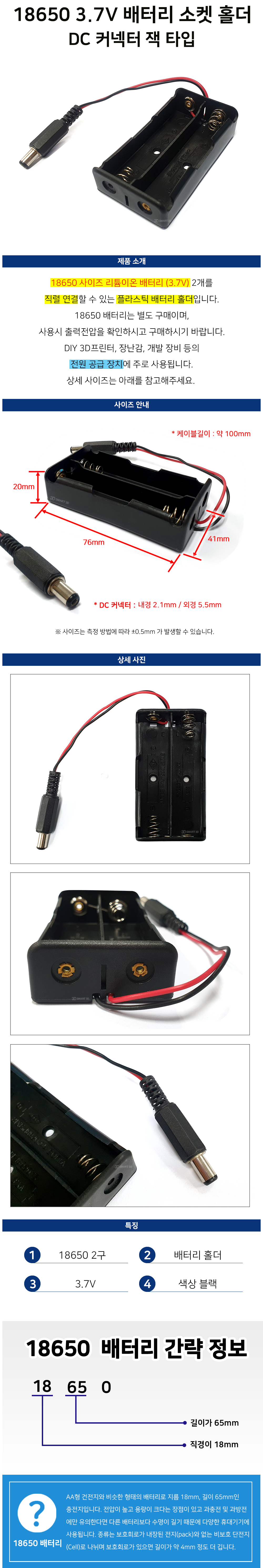 18650 배터리는 별도 구매이며, 사용시 출력 전압을 확인하시고 구매하시기 바랍니다.