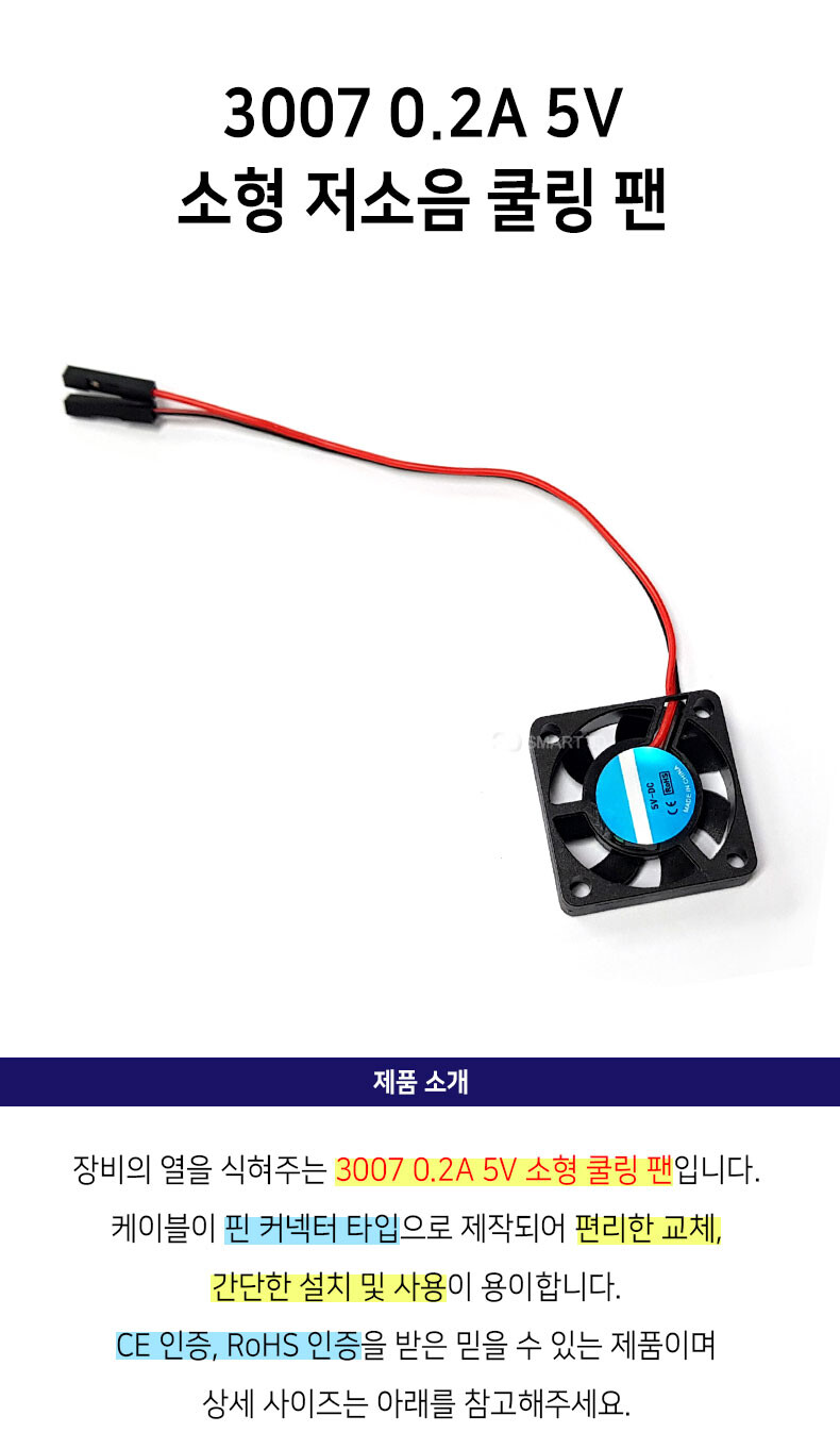 3007 0.2A 5V 소형 저소음 쿨링팬 (스마트3D)