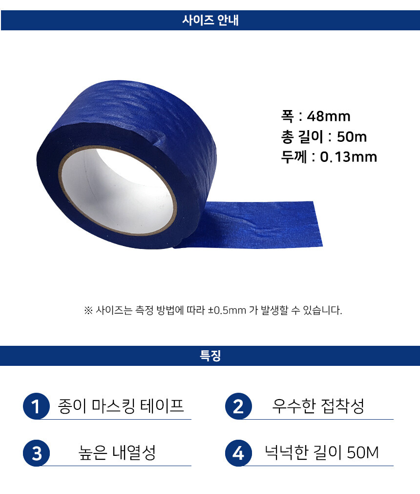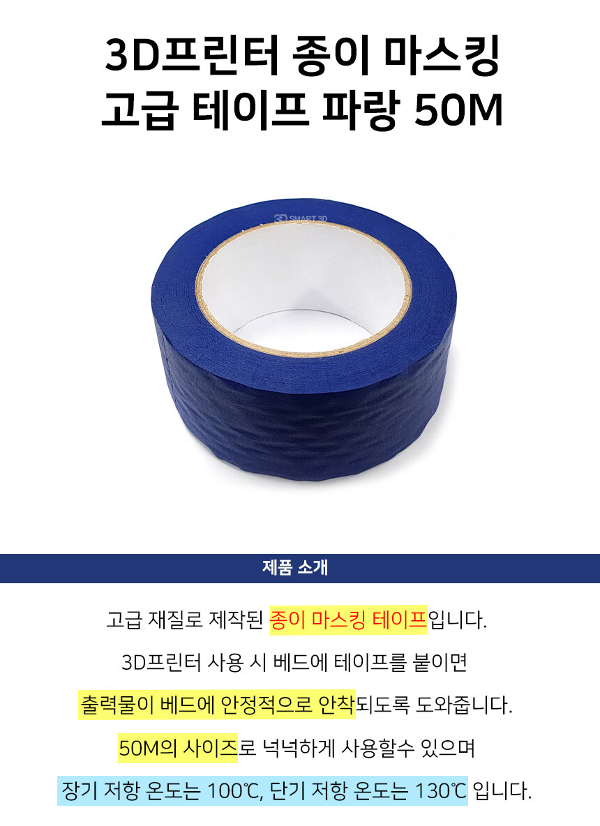 종이 마스킹 고급 테이프 파랑 3D프린터 50M (SMART3D)