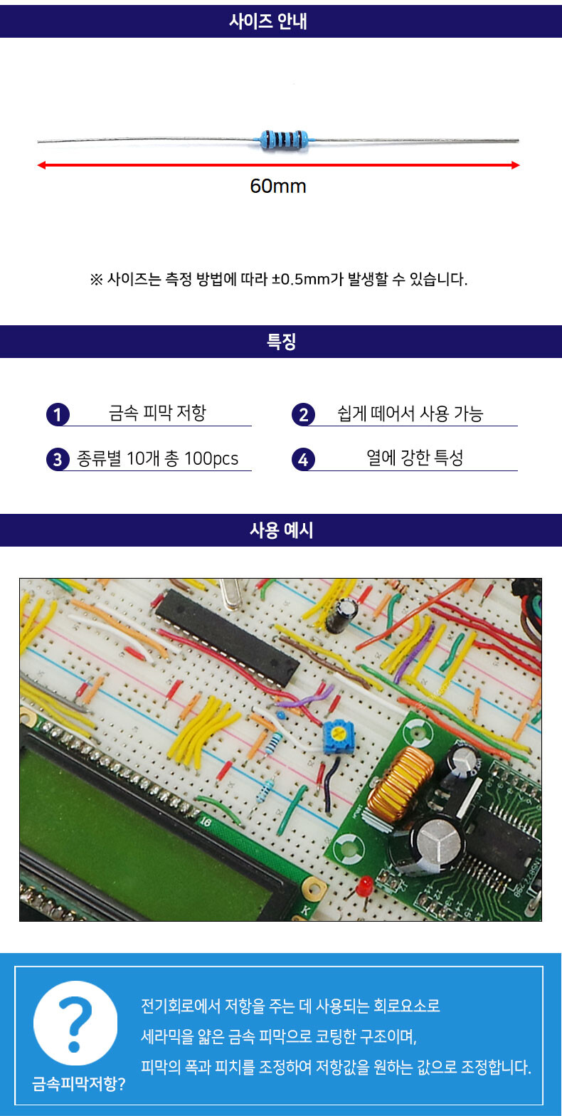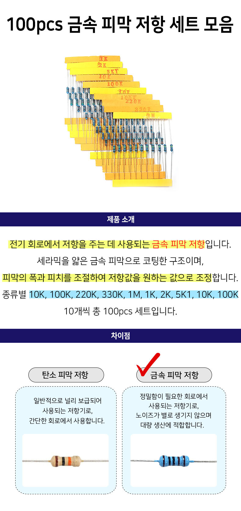 100pcs 금속 피막 저항 세트 모음 아두이노 E4-3