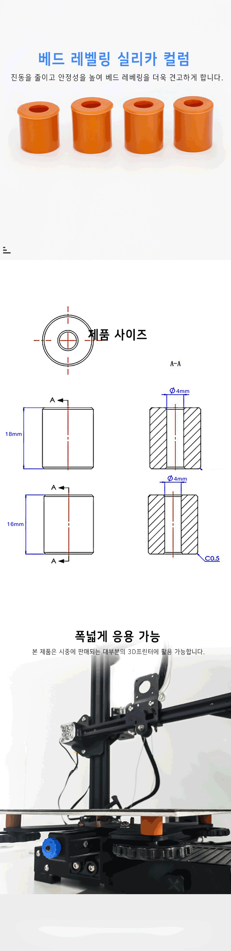 3D프린터 베드 밑판 진동흡수 실리카 컬럼 4pcs (Ender) [엔더 정품 부품]