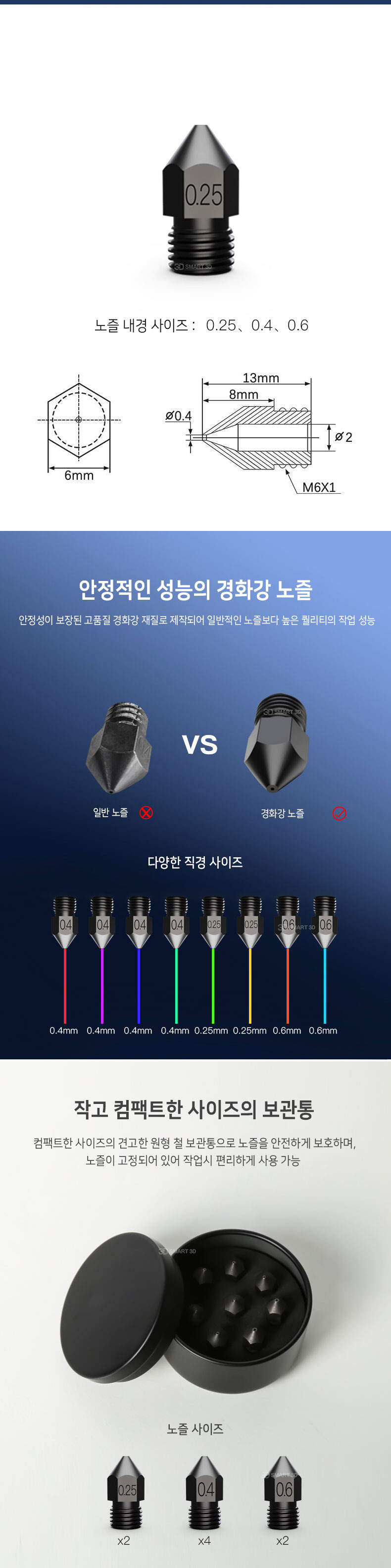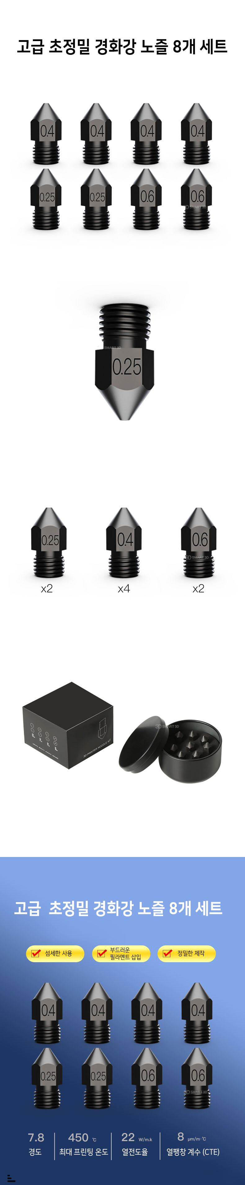 고급 초정밀 경화강 노즐 8개 세트 (Ender DIY CR) [정품 부품]