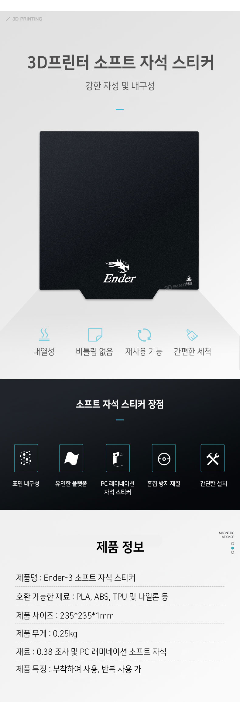 3D프린터 마그네틱 소프트 스티커 235x235x1 (엔더 DIY 시리즈) [정품 부품]