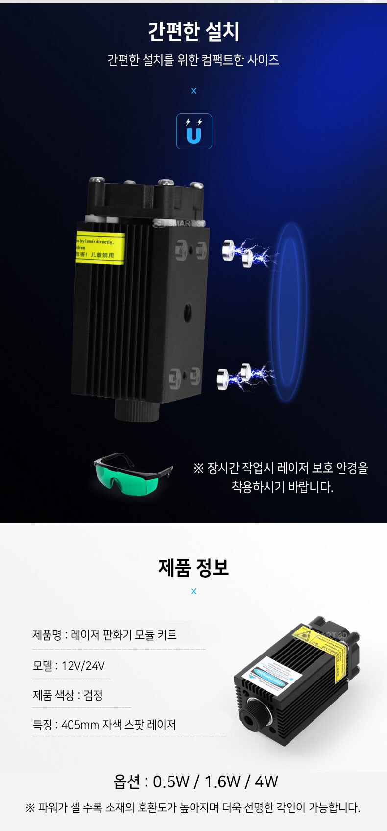 3D프린터에 호환 레이져 각인 모듈 키트 (0.5 1.6 4W 옵션) [정품 옵션]