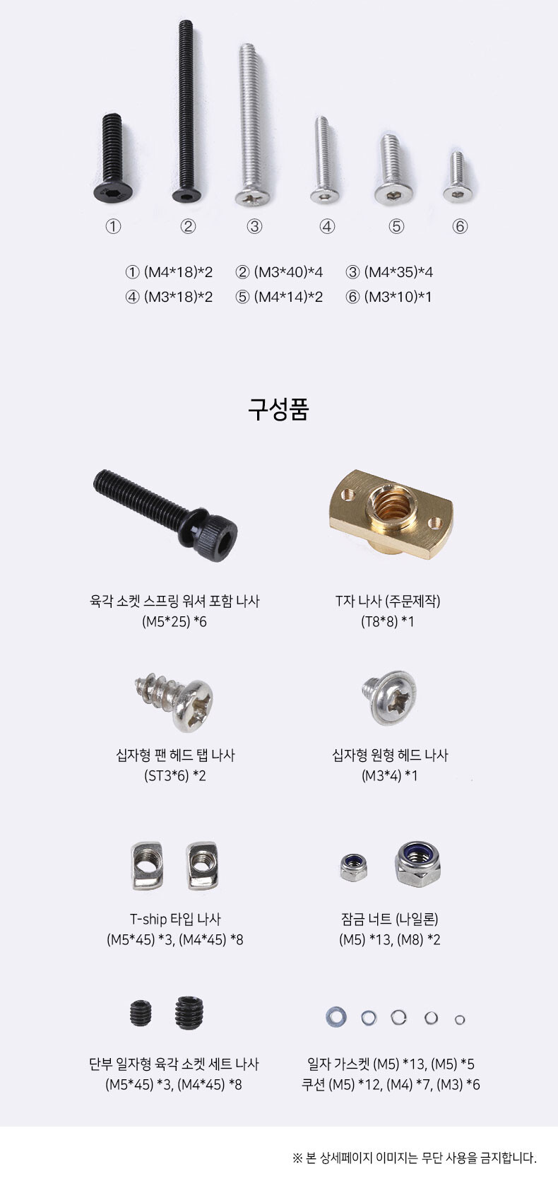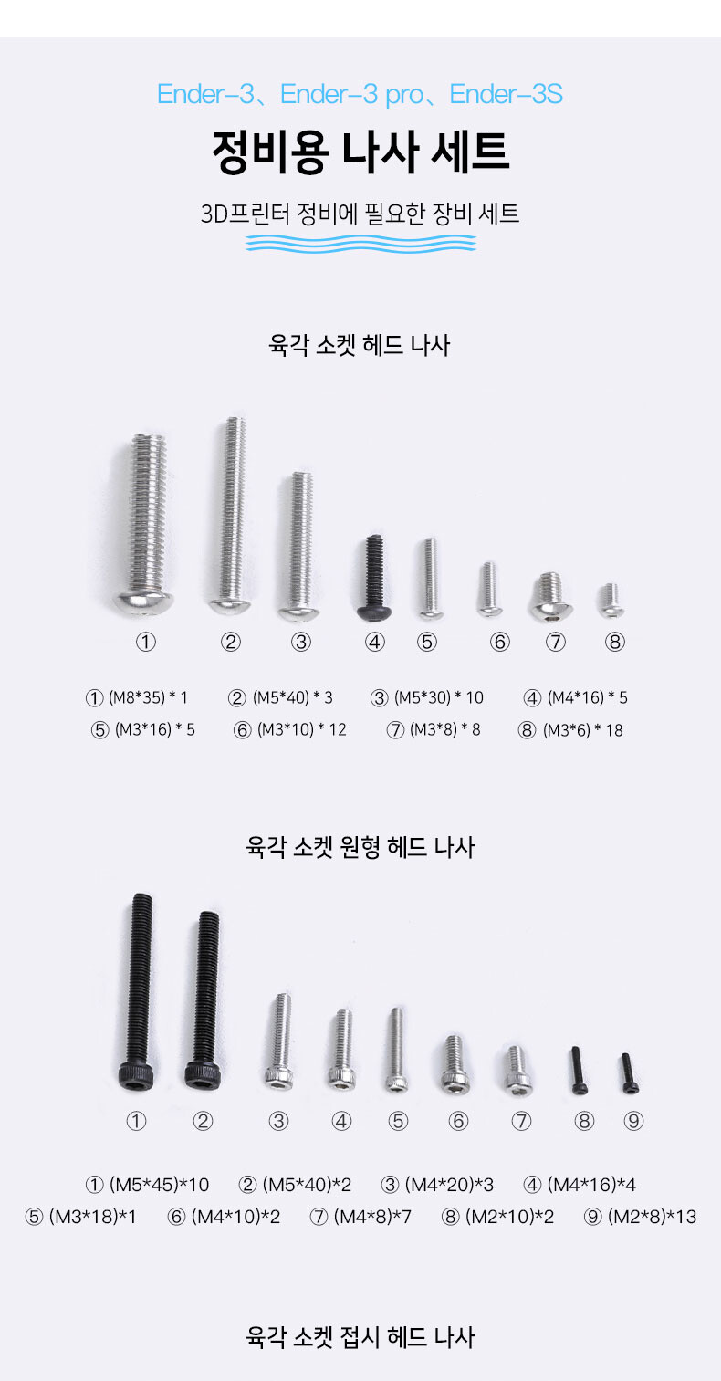 Ender 시리즈에 필요한 모든 나사 세트 모음 (Ender DIY) [정품 부품]