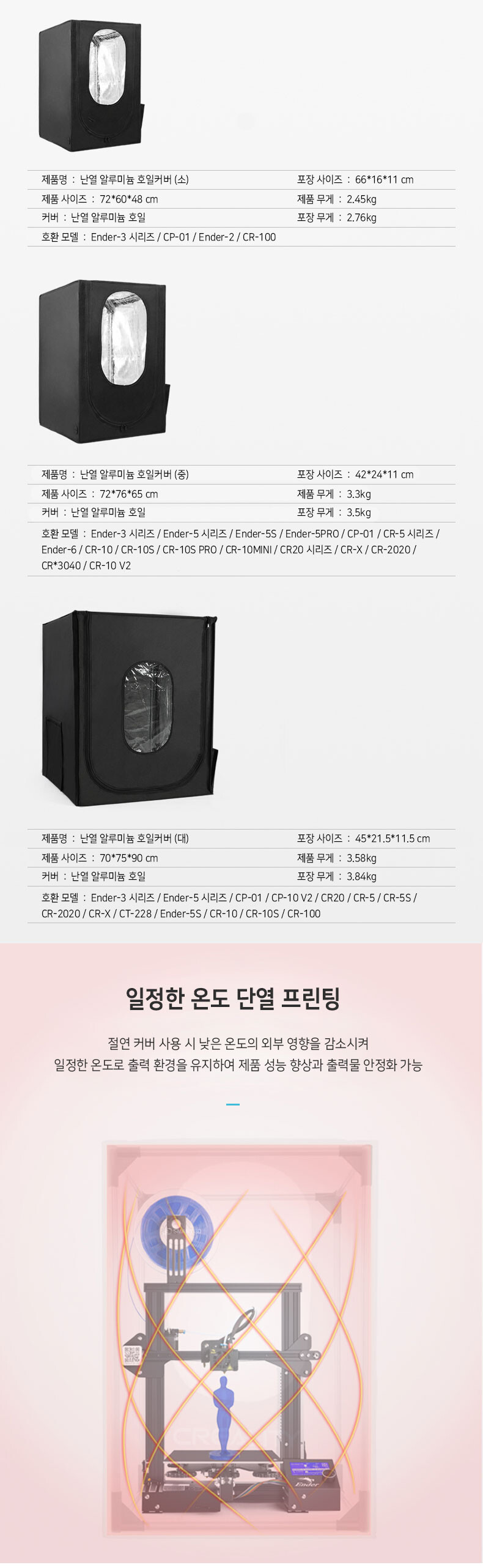 난열 알루미늄 3D프린터 일반 커버 (대/중/소) (엔더 CR DIY) [정품 옵션]