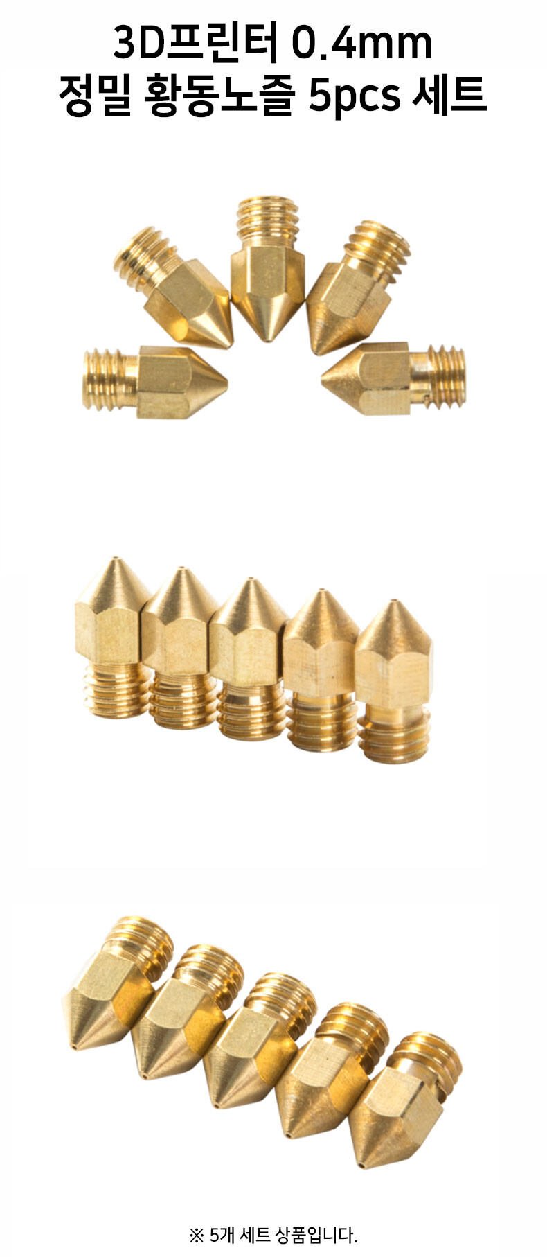 3D프린터 0.4mm 정밀 황동 노즐 (5pcs) (엔더 CR DIY) [정품 부품]