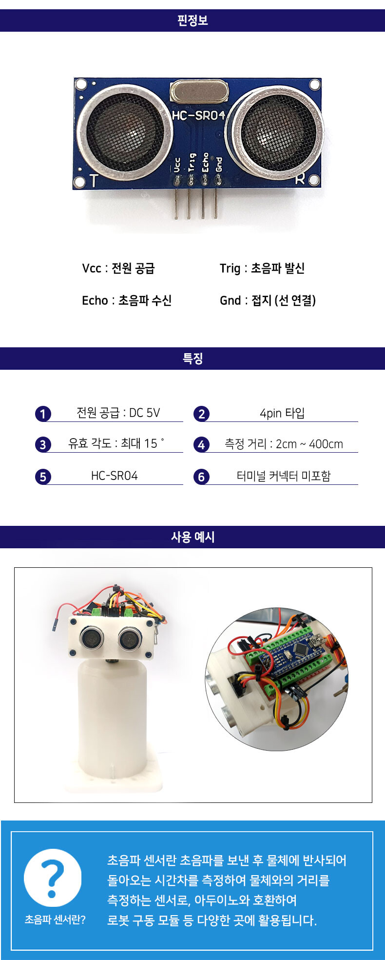 아두이노 고급 5V HC-SR04 타입 초음파 센서 4pin