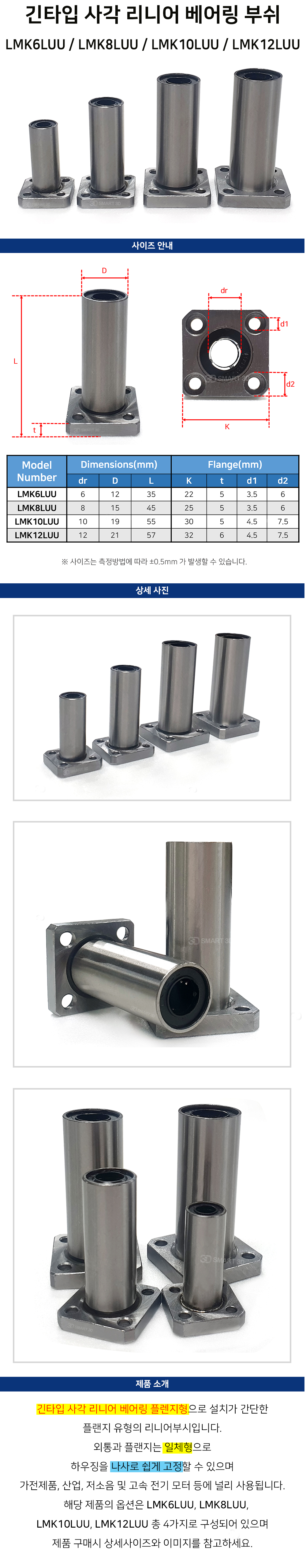 긴타입 사각 리니어 베어링 부쉬 LMK6LUU / LMK8LUU / LMK10LUU / LMK12LUU