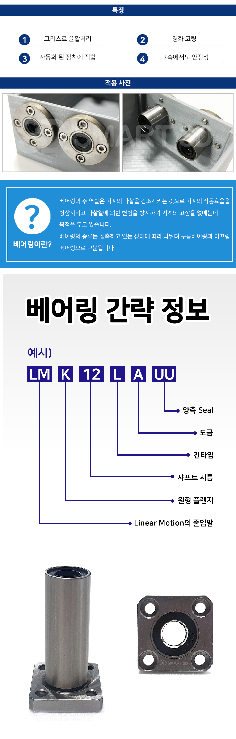 해당 제품의 옵션은 LMK6LUU, LMK8LUU, LMK10LUU, LMK12LUU 총 4가지로 구성되어 있습니다.