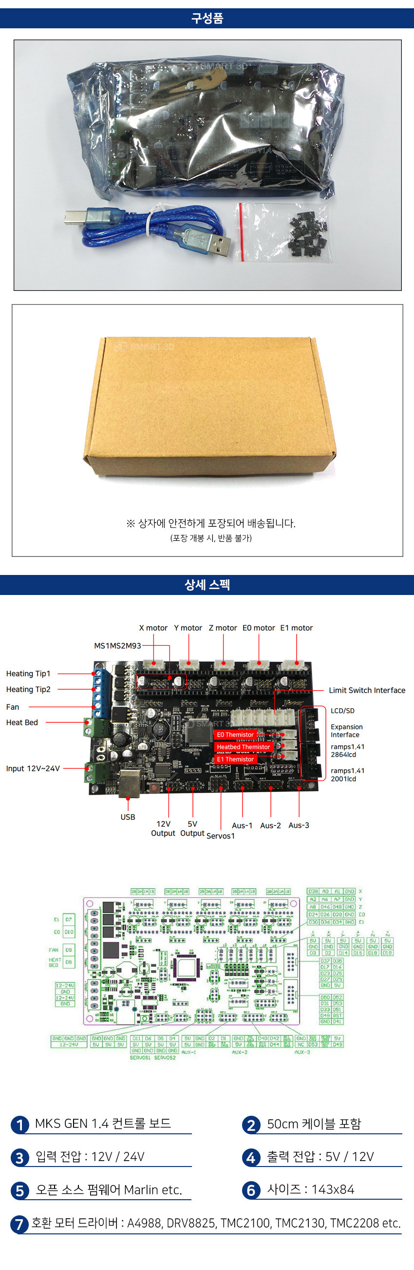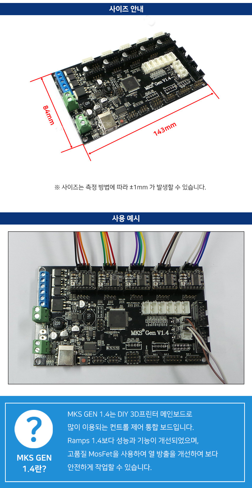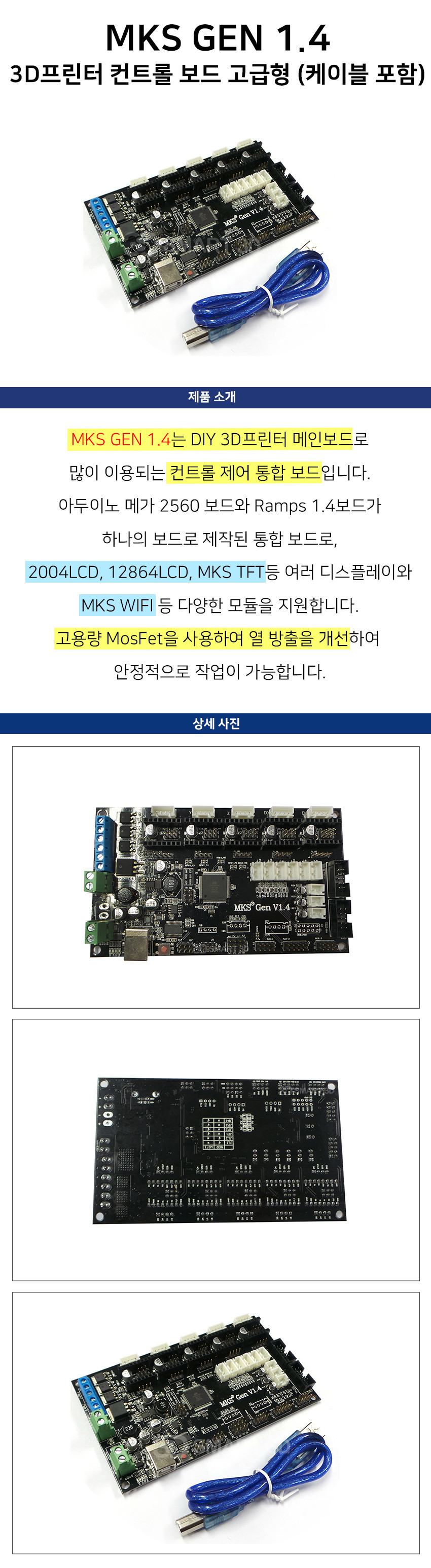 MKS GEN v1.4 3D프린터 DIY 자작 메인 컨트롤 제어 통합 보드 고급형 케이블