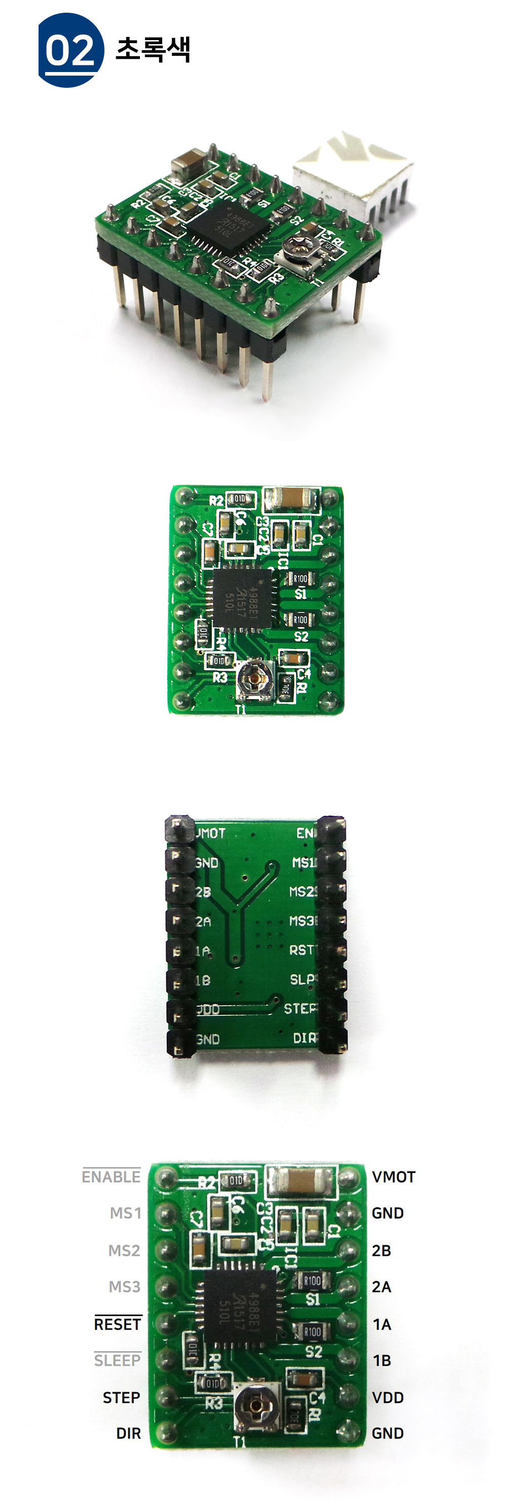 더욱 정밀한 제품을 원할 시 연관상품인 DRV8825 스텝모터 드라이버를 참고해주세요.