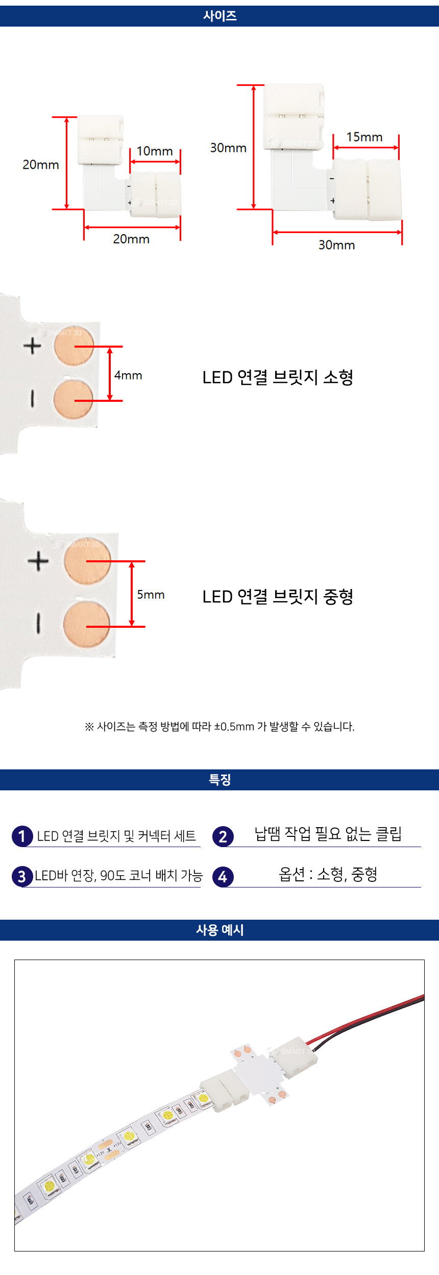 2P L자형 LED 연결 브릿지 및 커넥터 세트 (소형 / 중형)