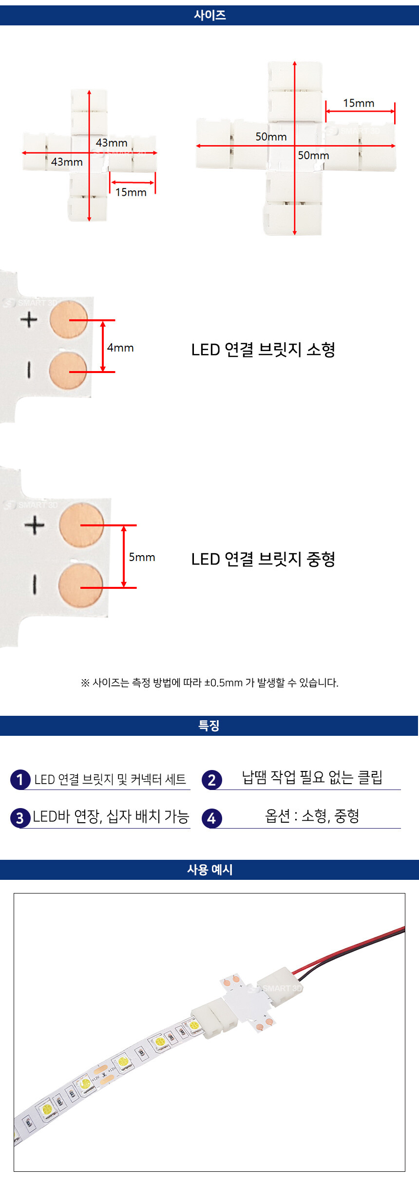 [VIP] 2P X자형 LED 연결 브릿지 및 커넥터 세트 (소형 / 중형)