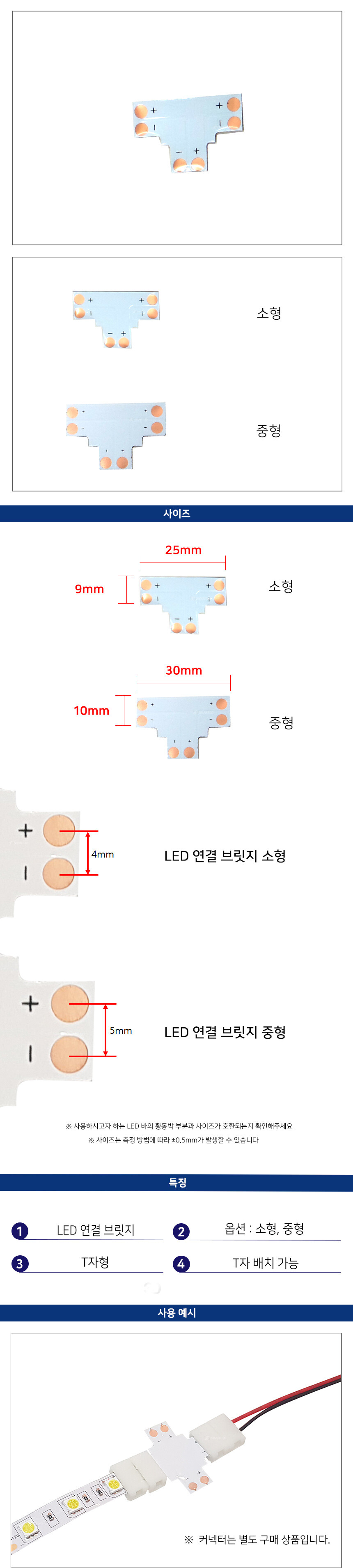 2P T자형 LED 연결 브릿지 (소형 / 중형)