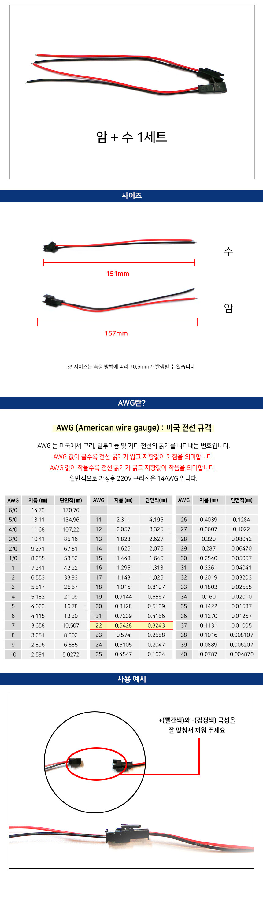 2핀 간편 고정 연결 커넥터 (암수 세트)