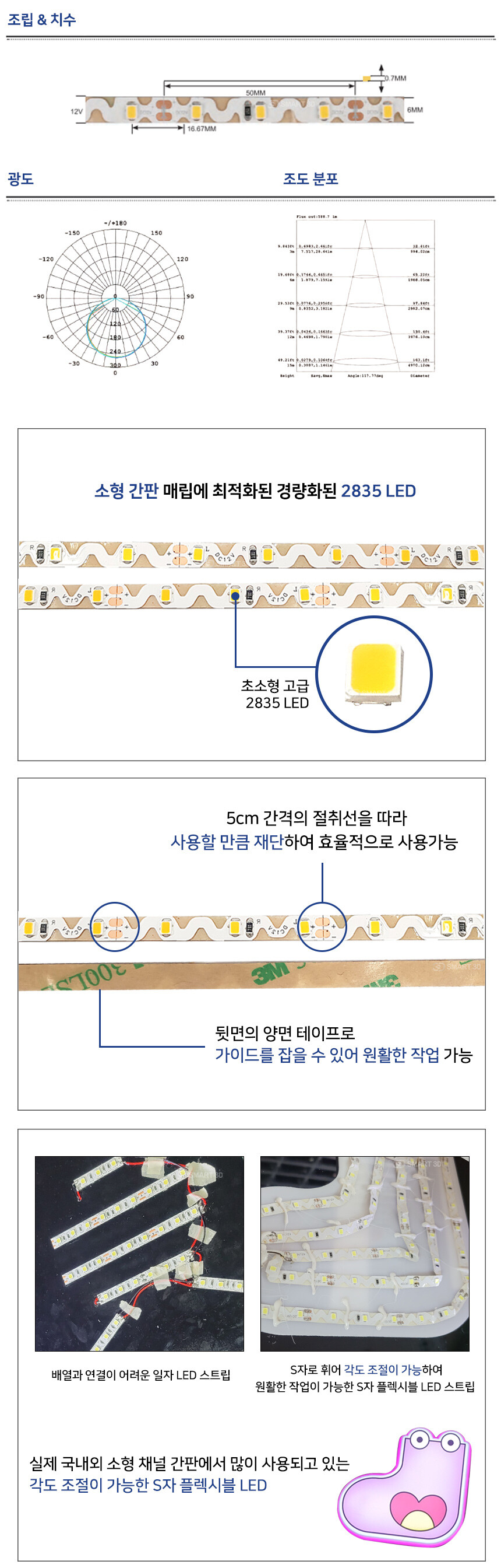 [VIP] 각도 조절용 플렉시블 소형 LED 스트립 모음 2835 [소형 채널 간판] 5M단위