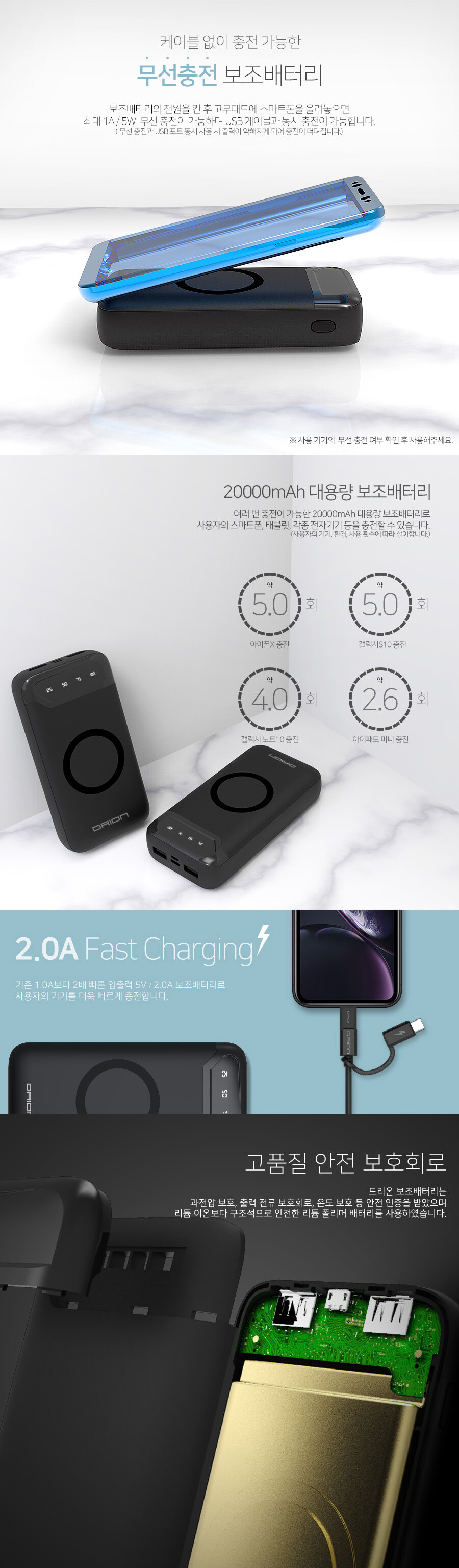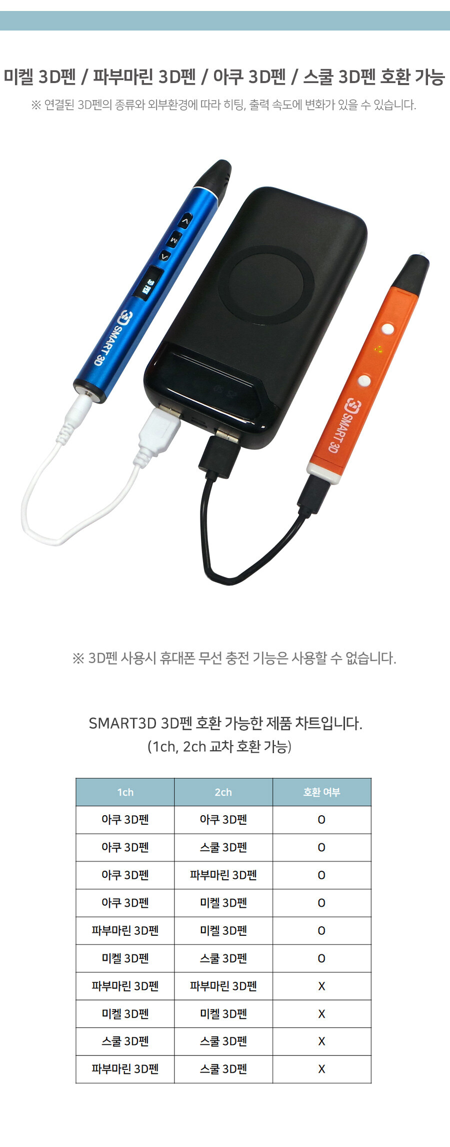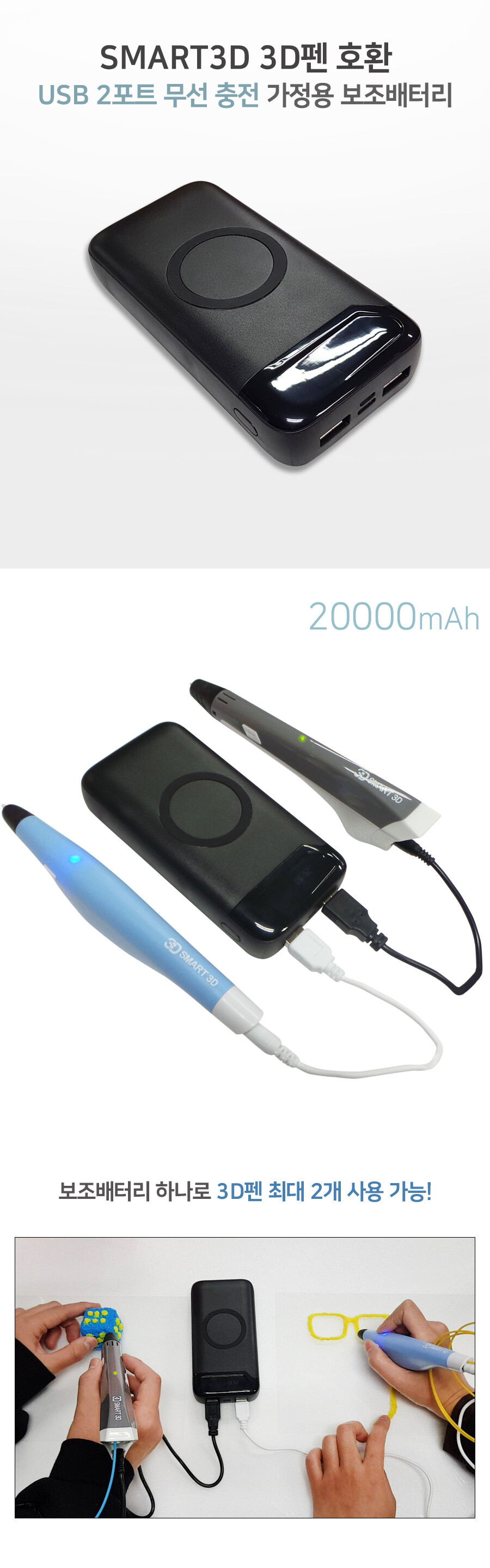 3D펜 호환 가정용 안전설계 USB 2포트 무선충전 보조배터리 스마트3D