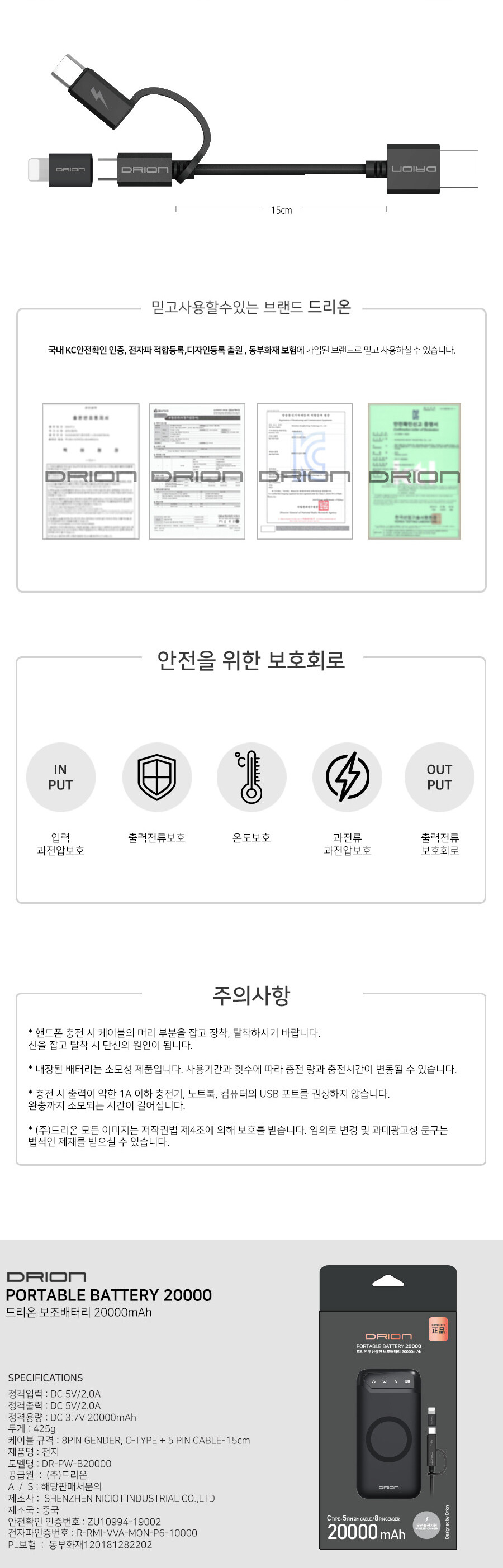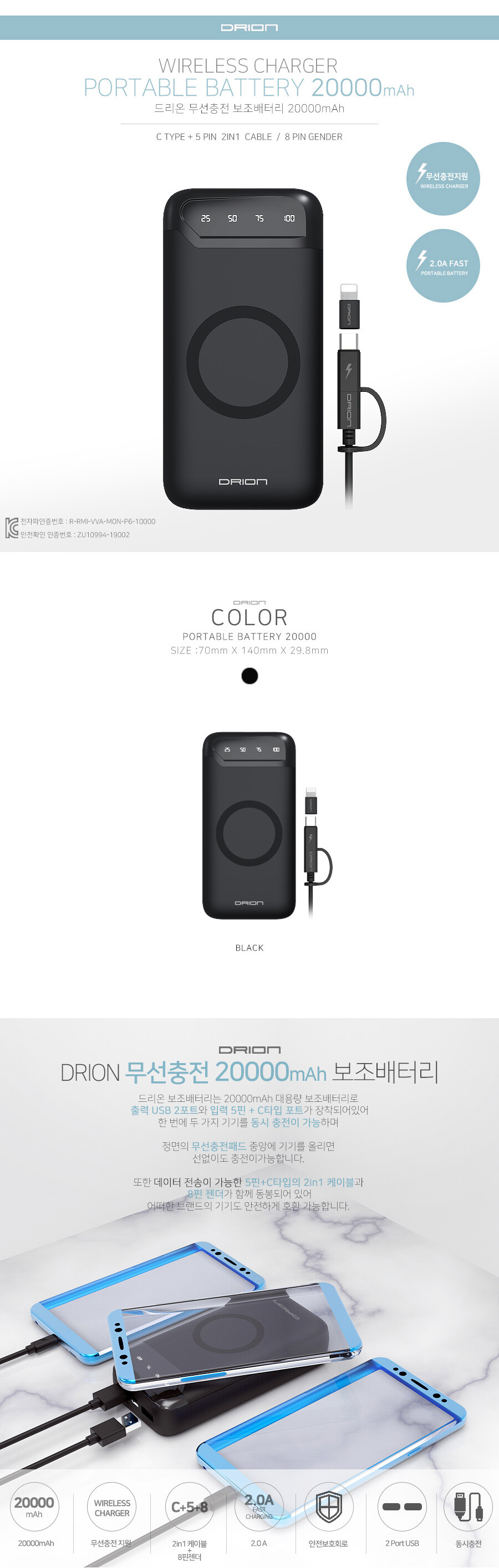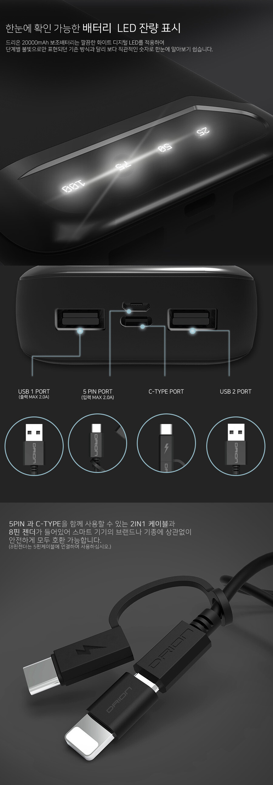 3D펜 호환 가정용 안전설계 USB 2포트 무선충전 보조배터리 스마트3D