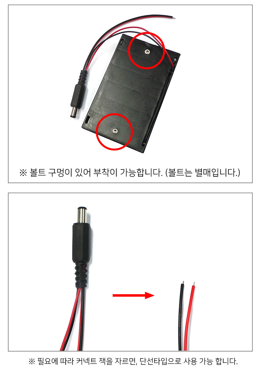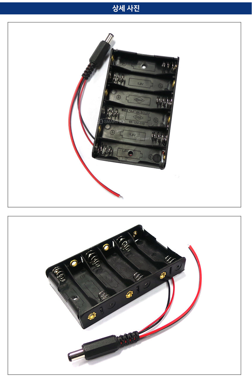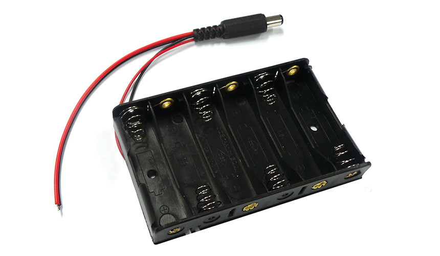 AA 배터리(1.5V) 6개를 직렬 연결할 수 있는 배터리 홀더입니다.