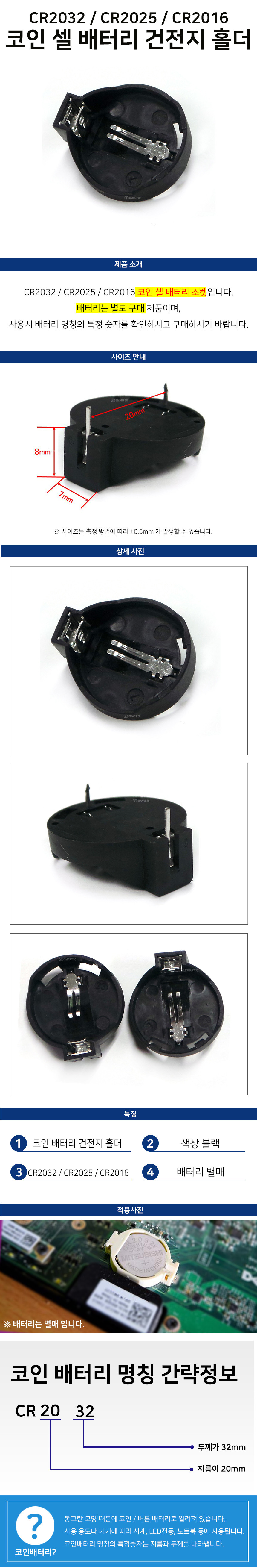 CR2032 / CR2025 / CR2016 코인 셀 배터리 건전지 홀더