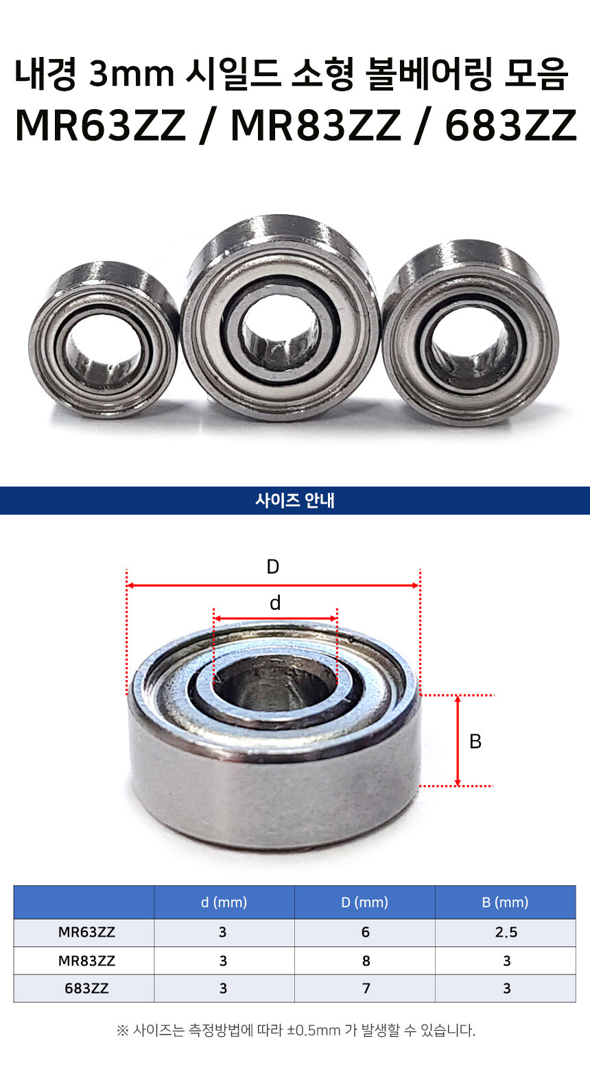 [내경 3mm] 시일드 소형 볼 베어링 모음 MR63ZZ MR83ZZ 683ZZ