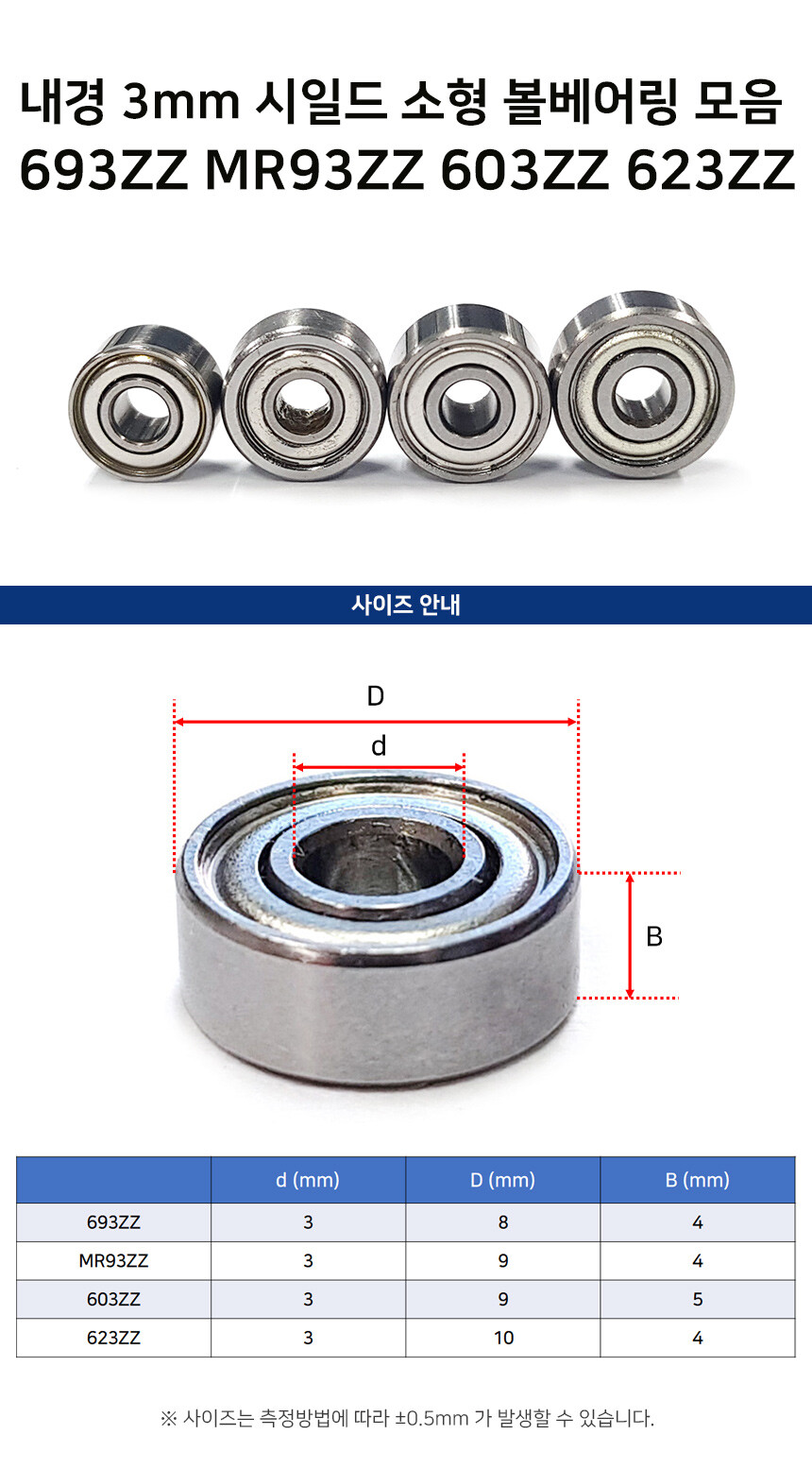 [내경 3mm] 시일드 소형 볼 베어링 모음 693ZZ MR93ZZ 603ZZ 623ZZ