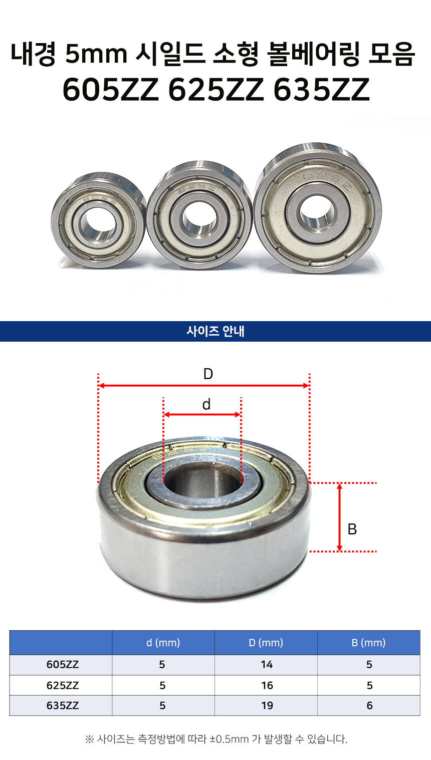 [내경 5mm] 시일드 소형 볼 베어링 모음 605ZZ 625ZZ 635ZZ