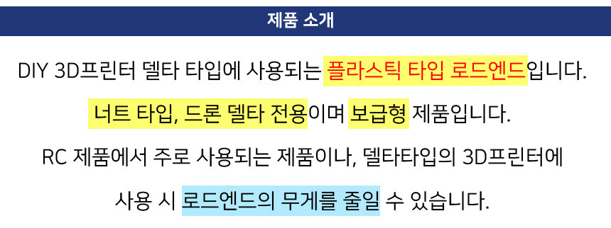 DIY 3D프린터 델타 타입에 사용되는 플라스틱 타입 로드앤드입니다. 너트타입, 드론 델타 전용이며 보급형 제품입니다.