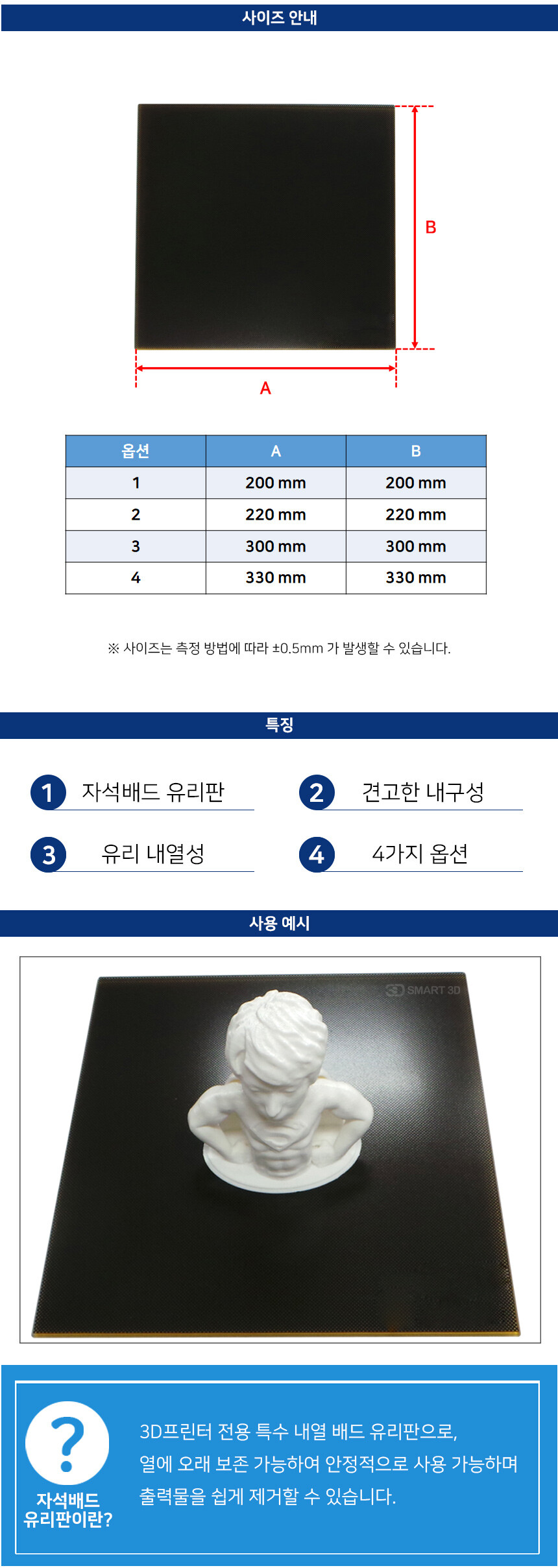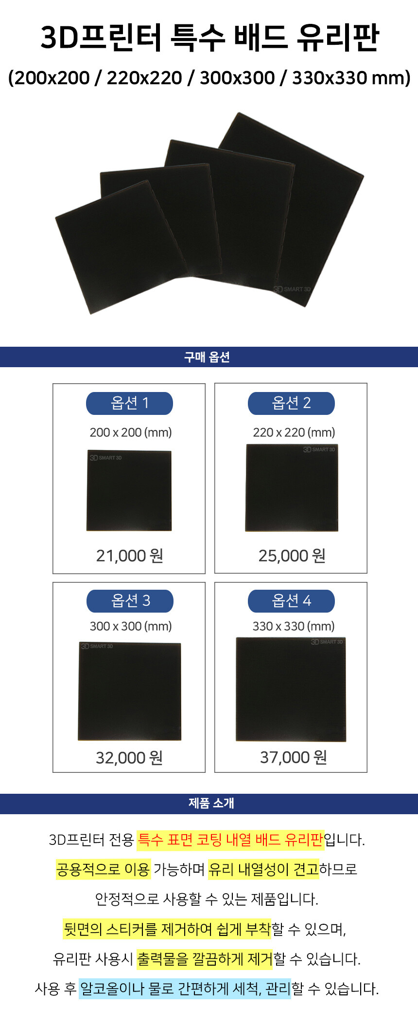 3D프린터 전용 특수 표면 코팅 내열 밑판 배드 유리판 모음