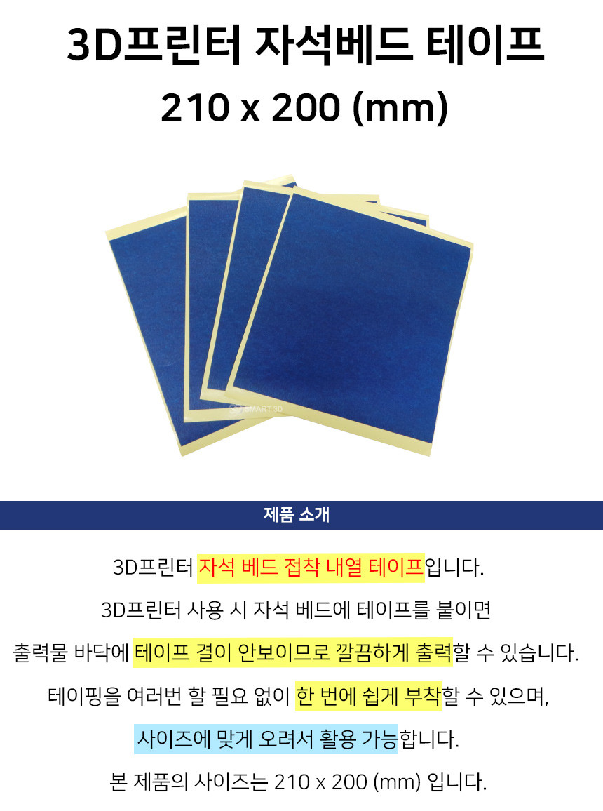 3D프린터용 210 x 200 (mm) 마스킹 종이 테이프 밑판 베드 내열 고온 사각형