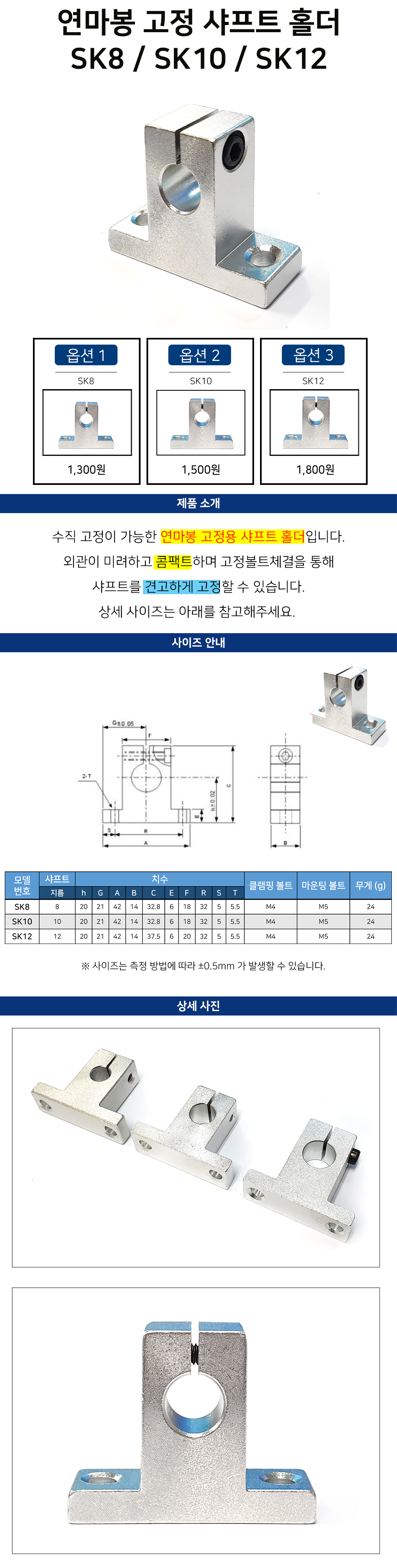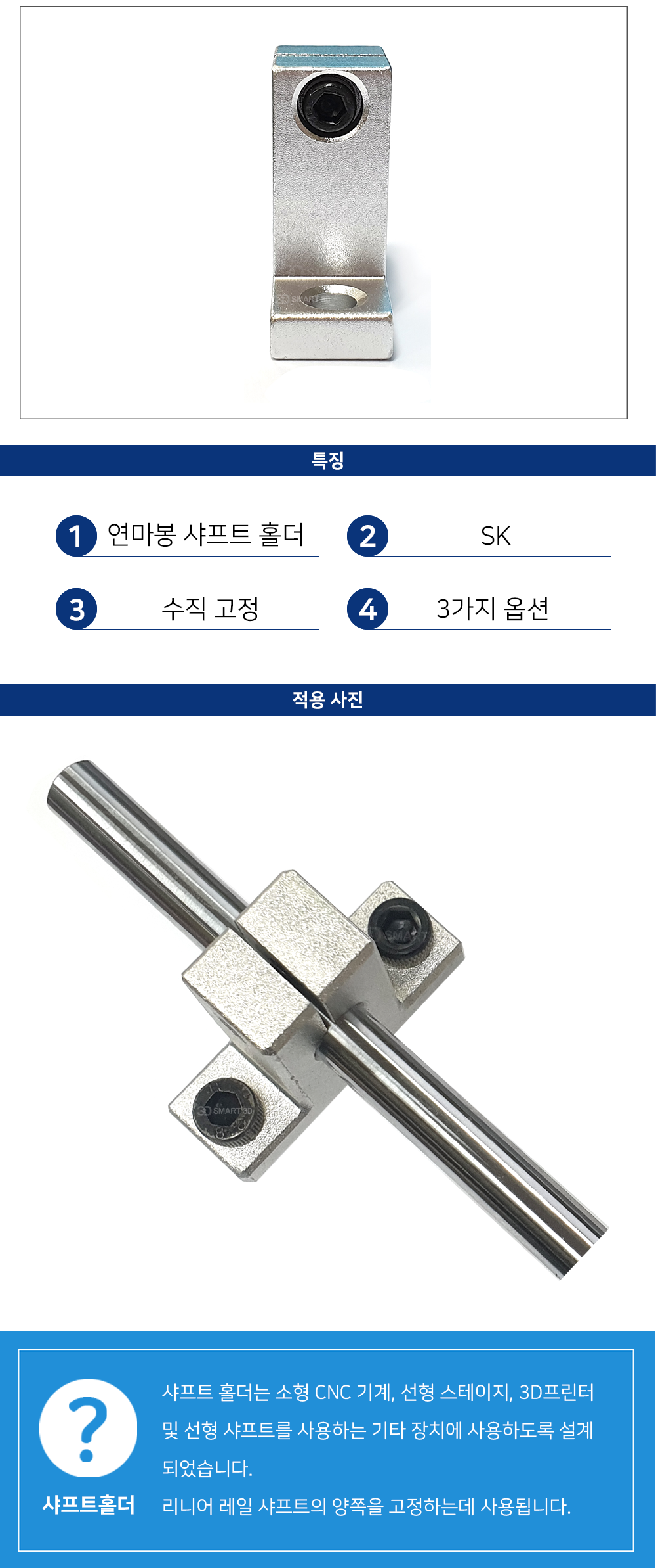 외관이 미려하고 콤팩트하며 고정 볼트 체결을 통해 샤프트를 견고하게 고정할 수 있습니다.