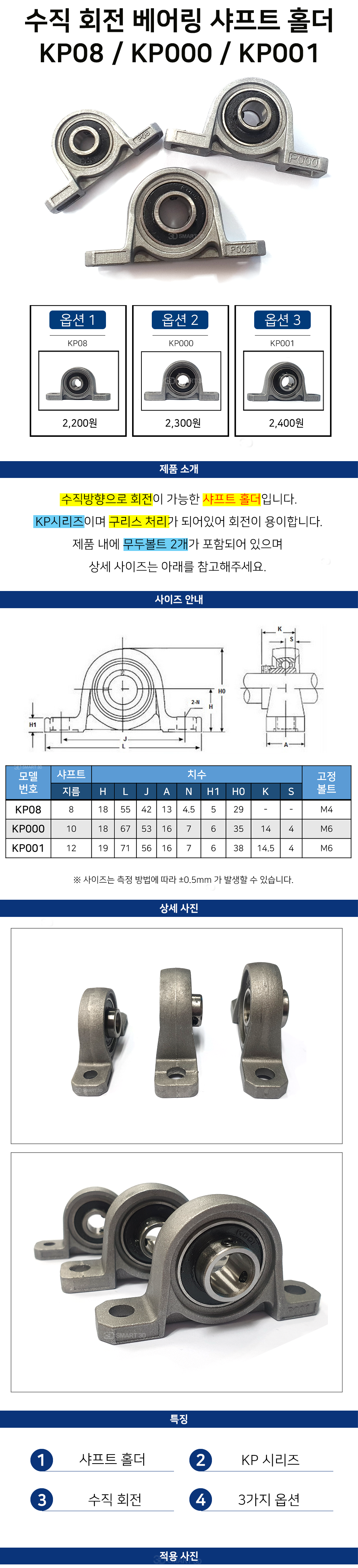 수직 회전 베어링 브라켓 KP08 / KP000 / KP001
