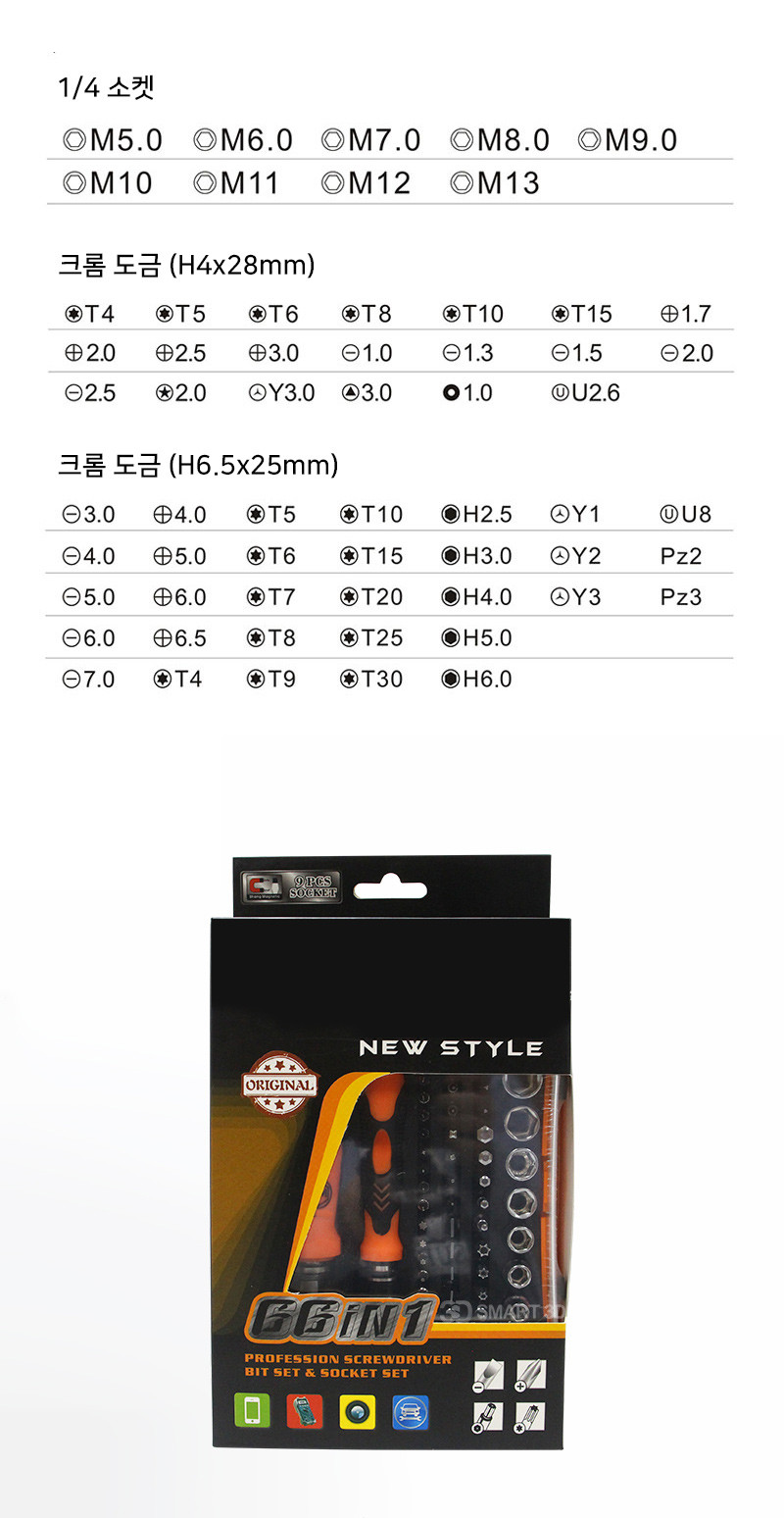 66종 다목적 가정용 공구 세트 스크류 드라이버 시계 안경