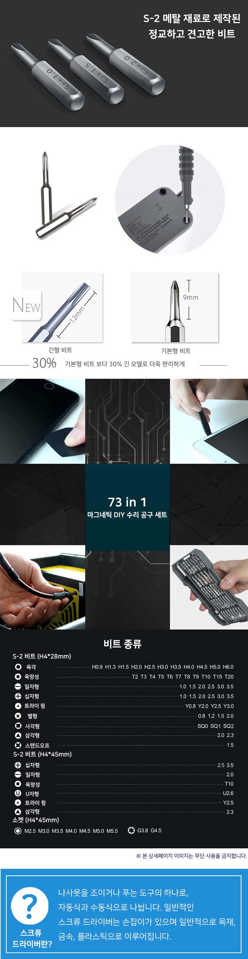 73 in 1 다용도 정밀 스크류 드라이버 세트입니다.