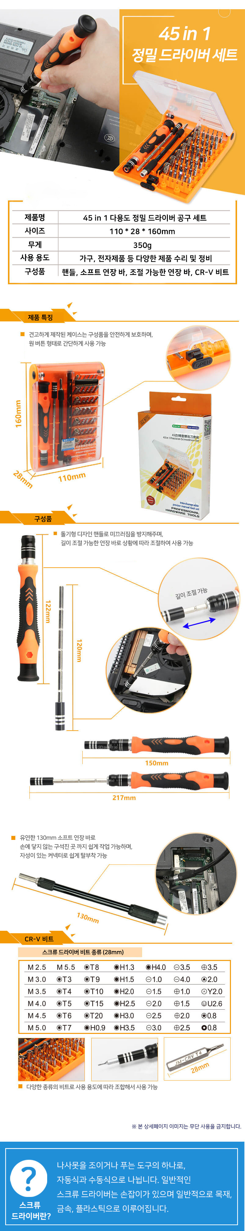 45종 공구 세트 다목적 가정용 스크류 드라이버 시계 안경