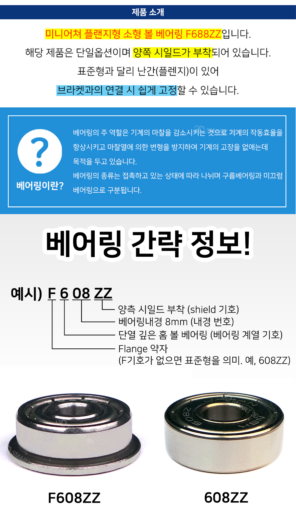 미니어쳐 플렌지형 볼 베어링 F688ZZ입니다.