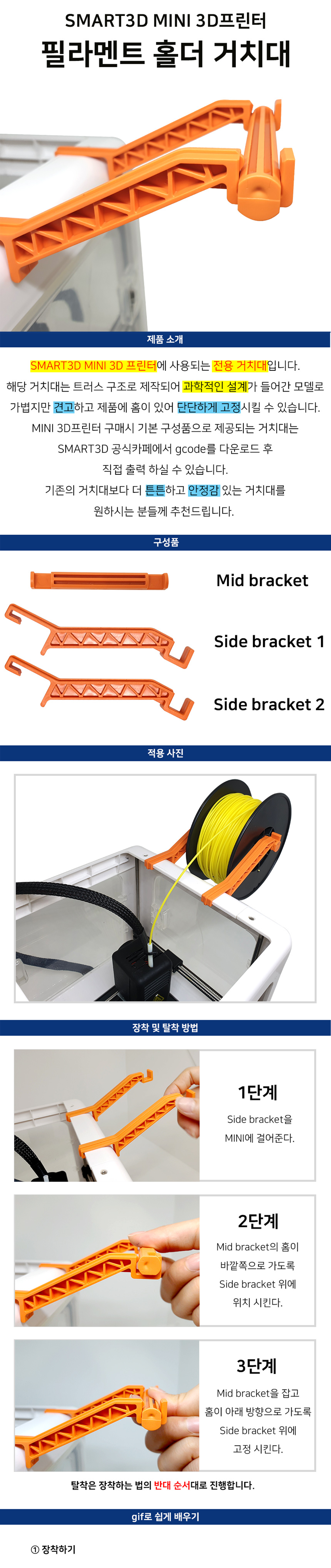 SMART3D MINI 3D프린터에 사용되는 250g 필라멘트 전용 거치대입니다.
