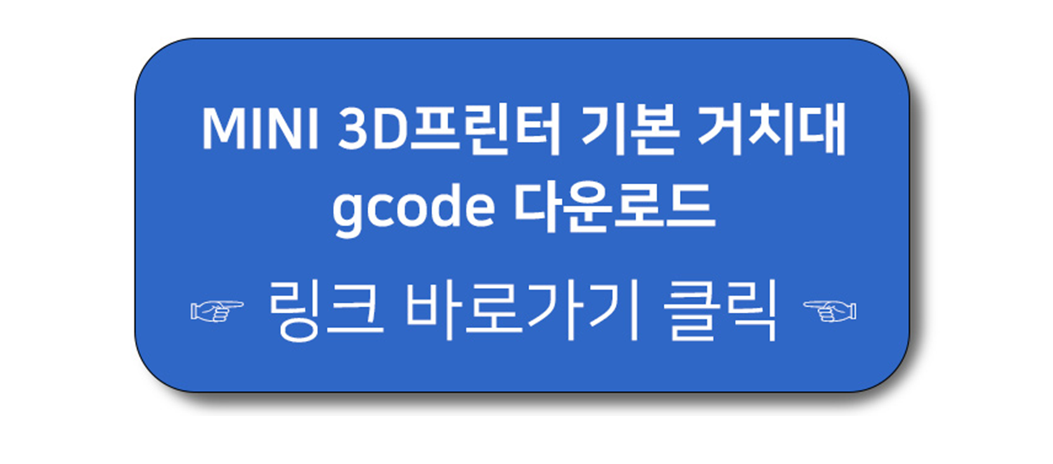 MINI 3D프린터 구매시 기본 구성품으로 제공되는 거치대는 SMART3D 공식카페에서 gcode를 다운로드 후 직접 출력하실 수 있습니다.