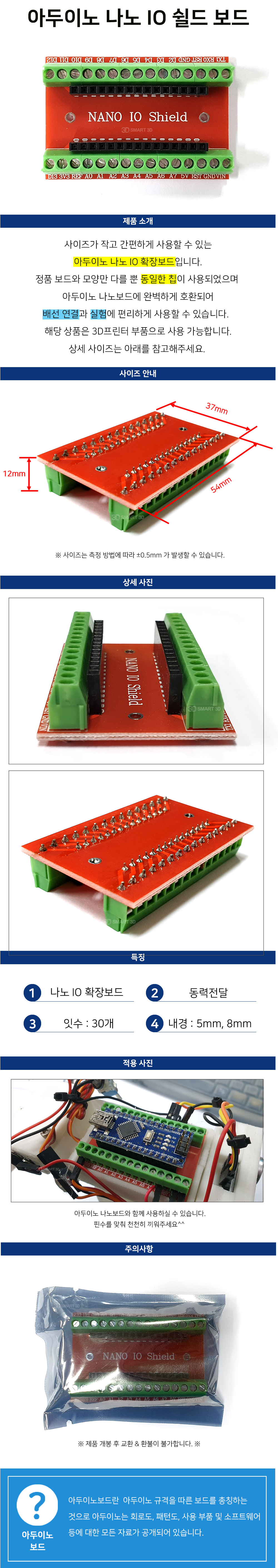 사이즈가 작고 간편하게 사용할 수 있는 아두이노 나노 IO 확장보드입니다.