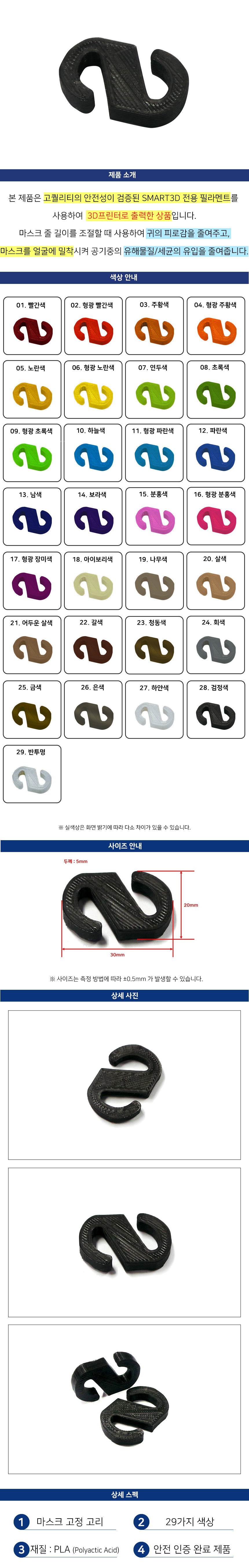 마스크 고정 고리 클립 의류보조 용품 29가지 색상 3D프린터 출력물