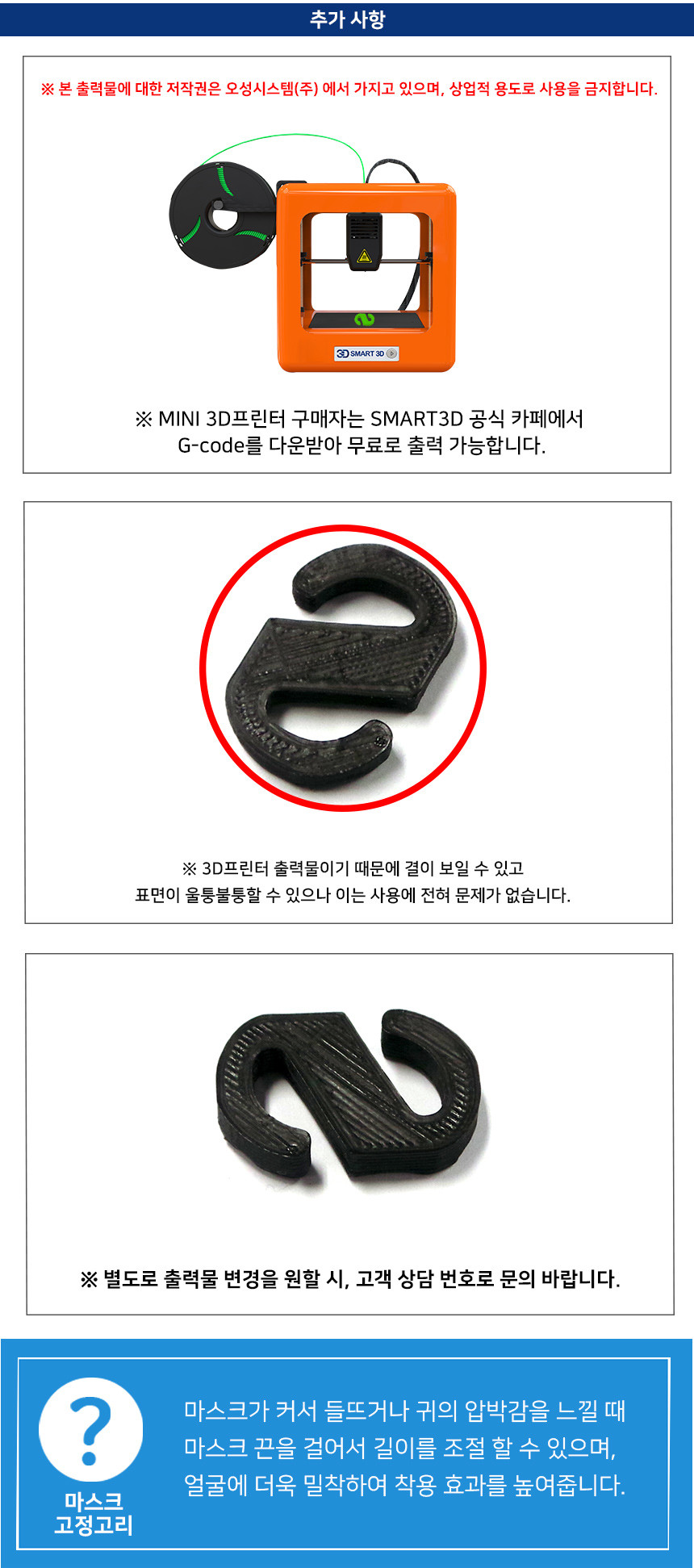 본 제품은 고퀄리티의 안전성이 검증된 SMART3D 전용 필라멘트를 사용하여 3D프린터로 출력한 상품입니다.