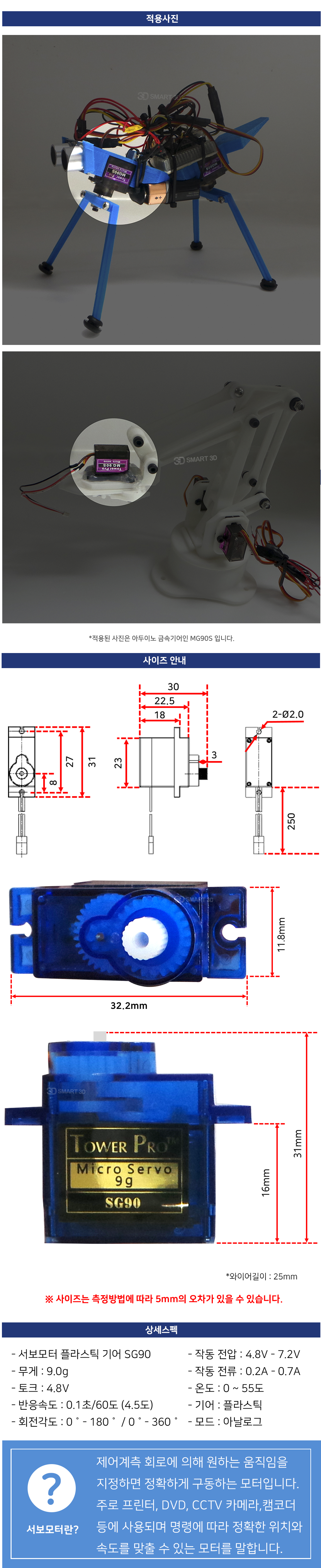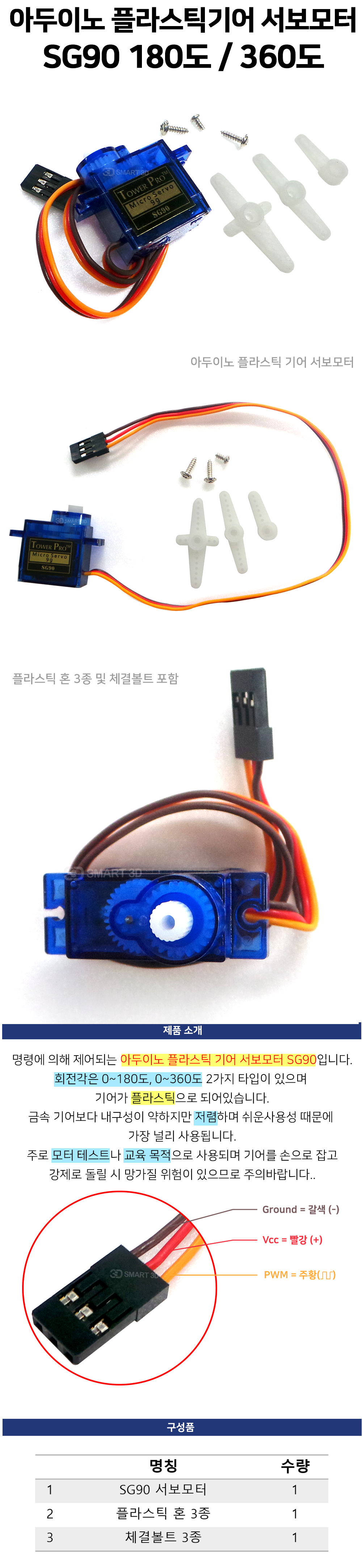 회전각은 0~180도, 0~360도 2가지 타입이 있으며 기어가 플라스틱으로 되어있습니다.