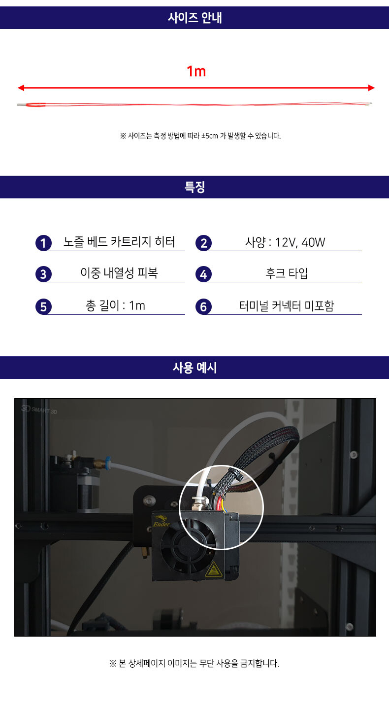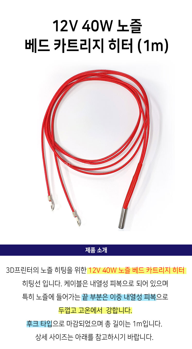 12V 40W 노즐 베드 카트리지 히터 (스마트3D)
