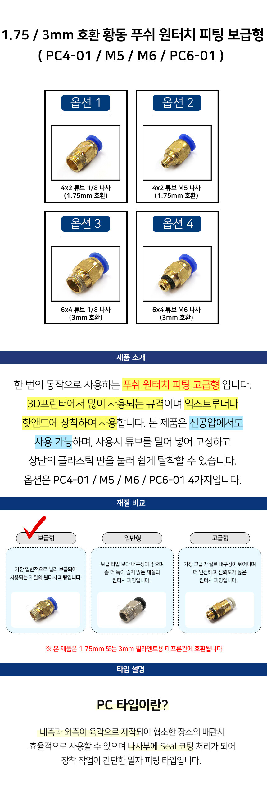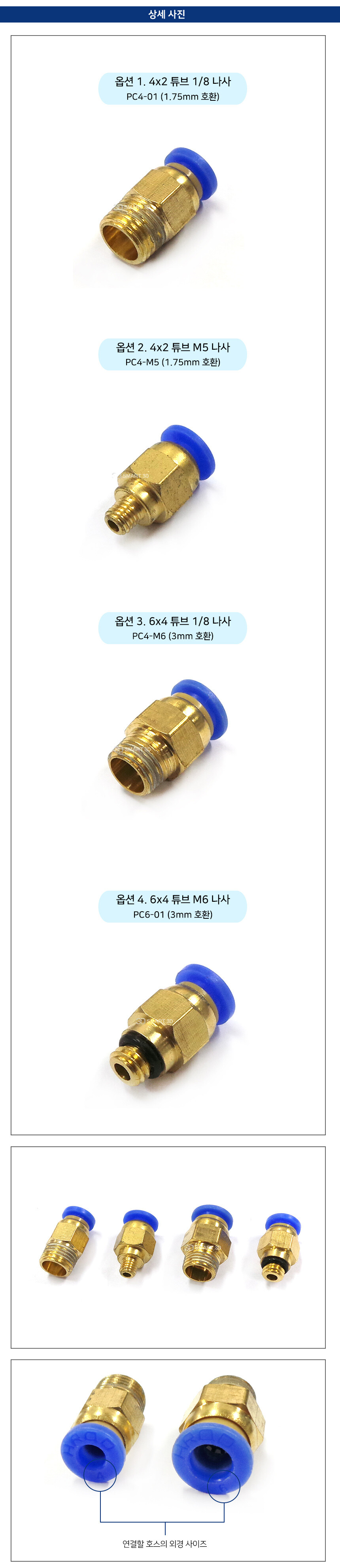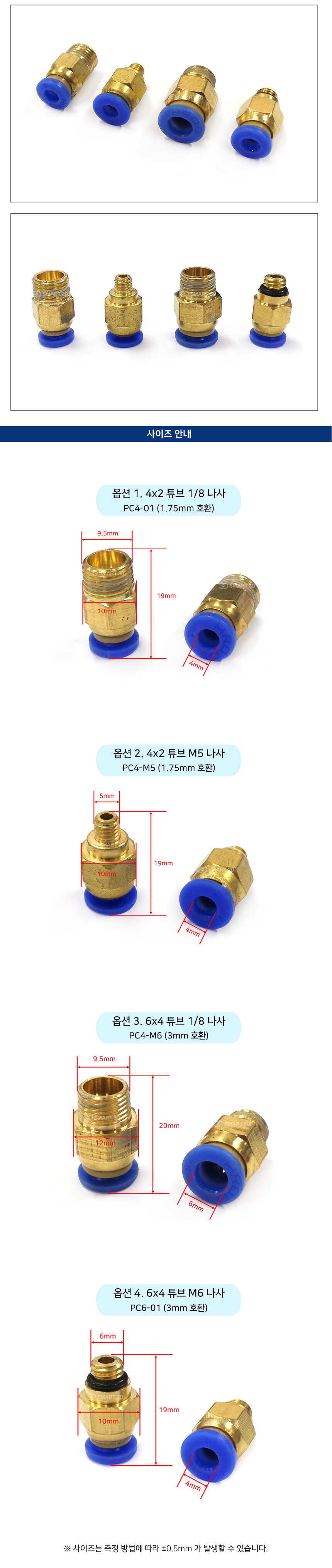 보급형 황동 푸쉬 원터치 피팅 모음 1.75 3mm 호환 (PC4-01 / M5 / M6 / PC6-01) 3D프린터 V6 보우덴