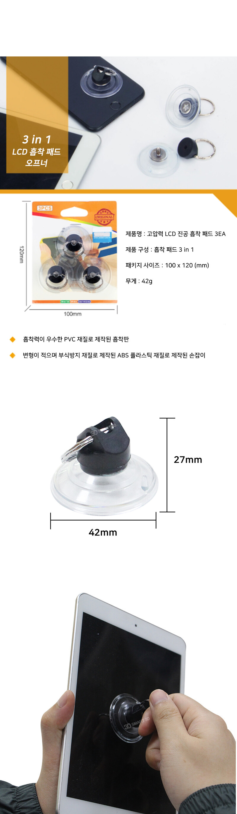 [VIP] 고압력 LCD 진공 흡착 패드 3EA (컵 오프너 LCD 스마트폰)