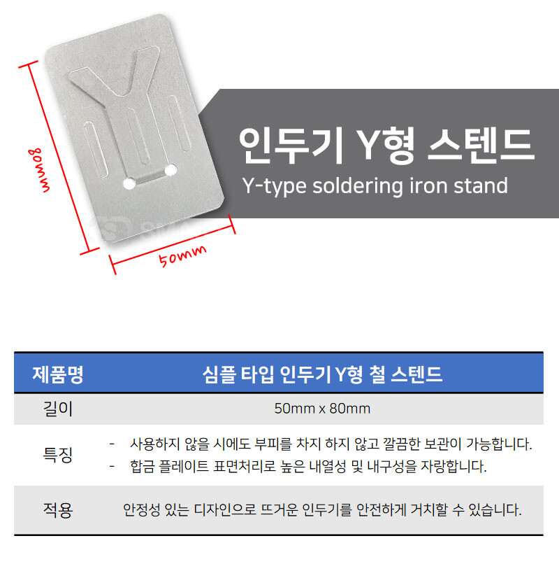 안정성 있는 Y형 디자인으로 인두기를 안전하게 거치할 수 있는 철 스텐드입니다.